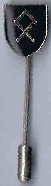 Emblemas (da esquerda para a direita, runa odal ᛟ, cruz céltica, cruz gamada, emblema do Partido Nacional Socialista, símbolo nacional-bolchevique, emblema croata).