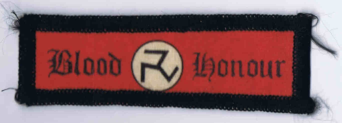 Insígnias de pano do grupo Blood and Honour e do Pamyat.
