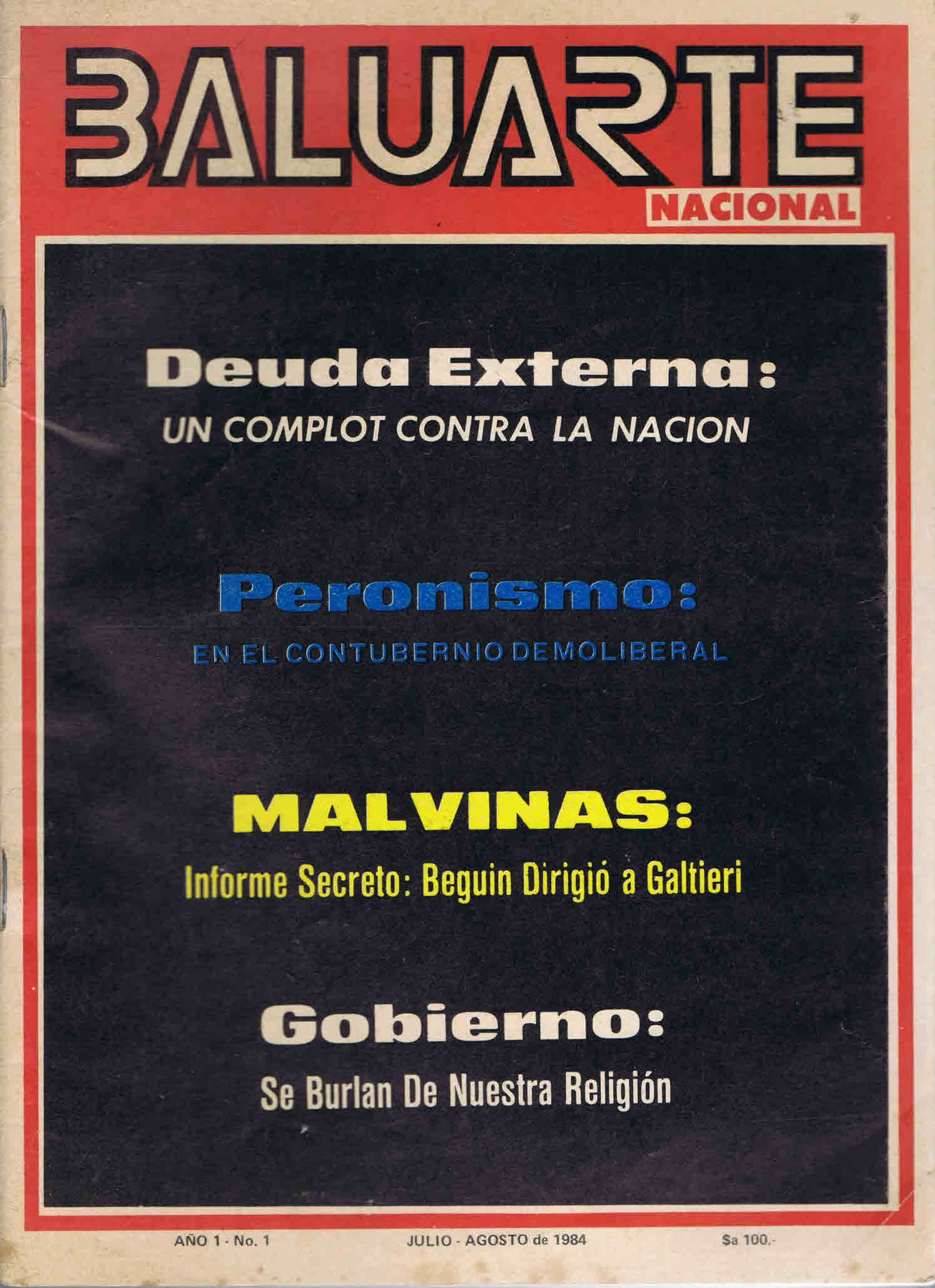 Baluarte Nacional, Organo de la Agrupación Justicialista “Juan Manuel de Rosas”, 1, Julho – Agosto 1984.