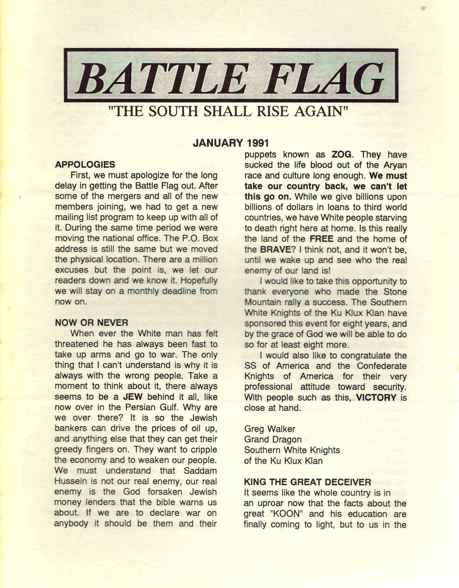 Battle Flag, “The South Shall Rise Again”, Janeiro 1991.
