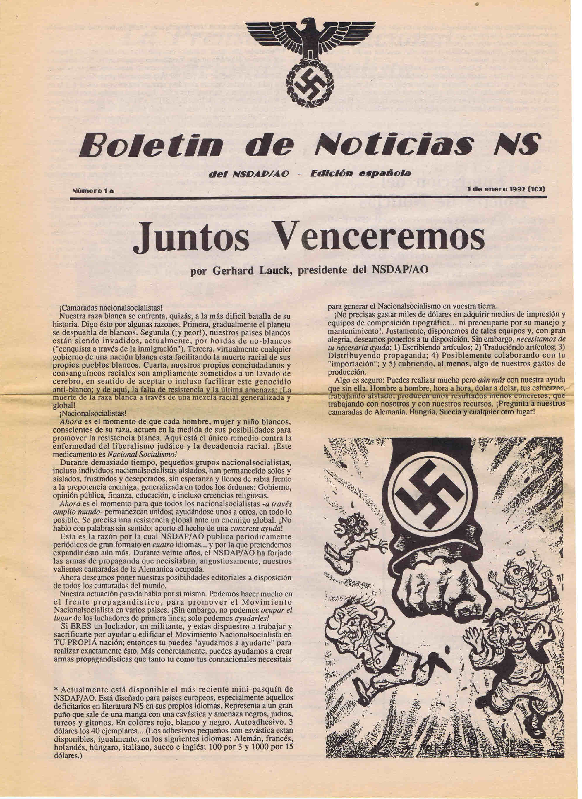 Boletin de Noticias NS, Del NSDAP / AO – Edición española, 1. 1 de Janeiro de 1992.