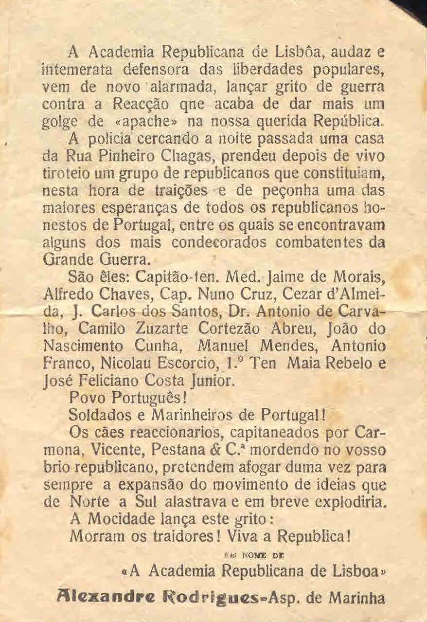 ACADEMIA REPUBLICANA DE LISBOA 01/04/2010 JPP 1928, Academia Republicana de Lsiboa, ARQUIVO, Oposição portuguesa / Publicações clandestinas, Panfletos - folhetos - folhas volantes - prospectos tarjetas, Repressão 0 Panfleto (1928?) Print (Opens in new window) Print Email a link to a friend (Opens in new window) Email Share on Facebook (Opens in new window) Facebook Share on X (Opens in new window) X Share on LinkedIn (Opens in new window) LinkedIn Like this:Like Loading...