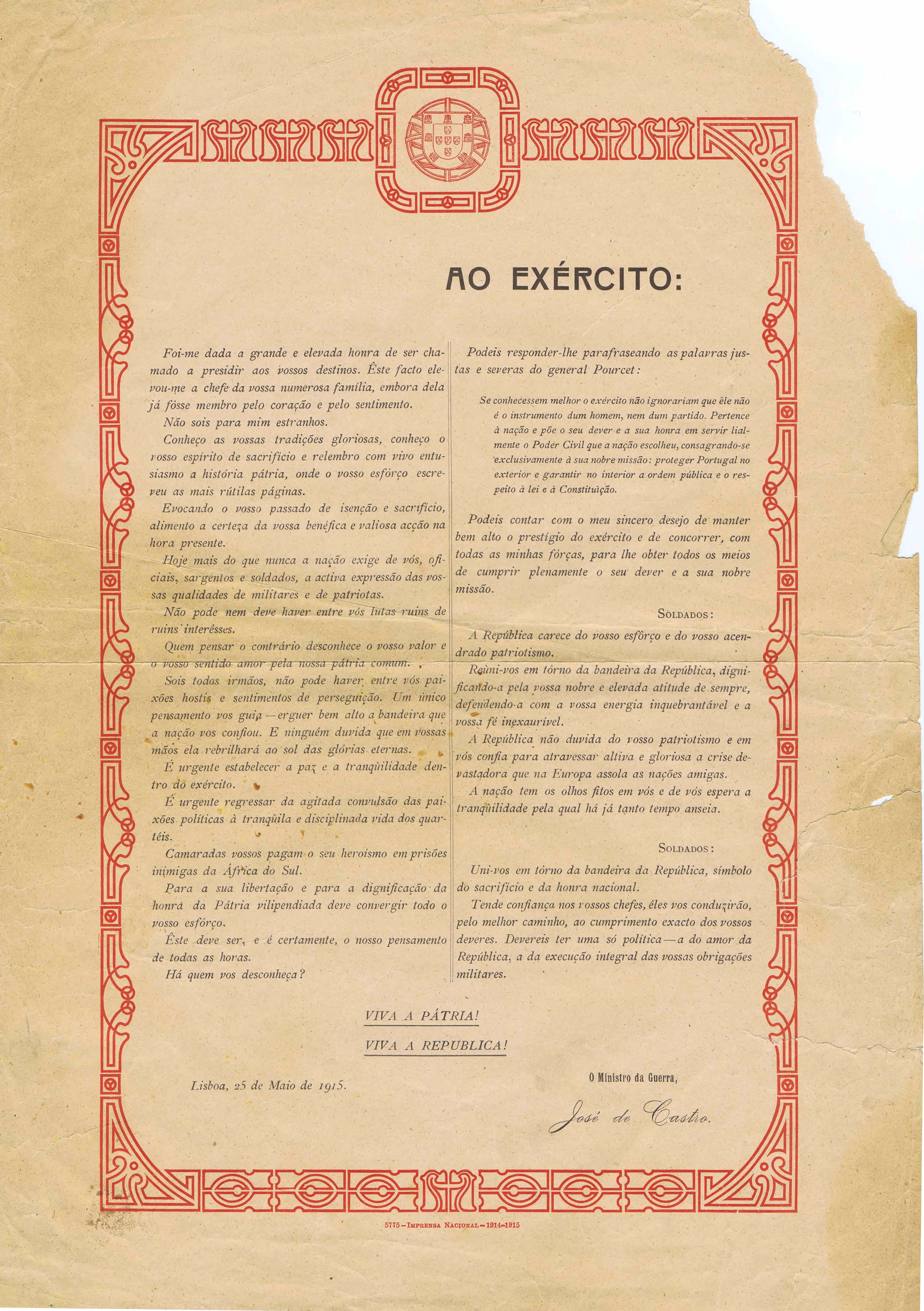 JOSÉ DE CASTRO – AO EXÉRCITO (1915) 02/04/2010 JPP 1915, ARQUIVO, Castro, José de, Panfletos - folhetos - folhas volantes - prospectos tarjetas 0 Clicar para ampliar. Print (Opens in new window) Print Email a link to a friend (Opens in new window) Email Share on Facebook (Opens in new window) Facebook Share on X (Opens in new window) X Share on LinkedIn (Opens in new window) LinkedIn Like this:Like Loading...