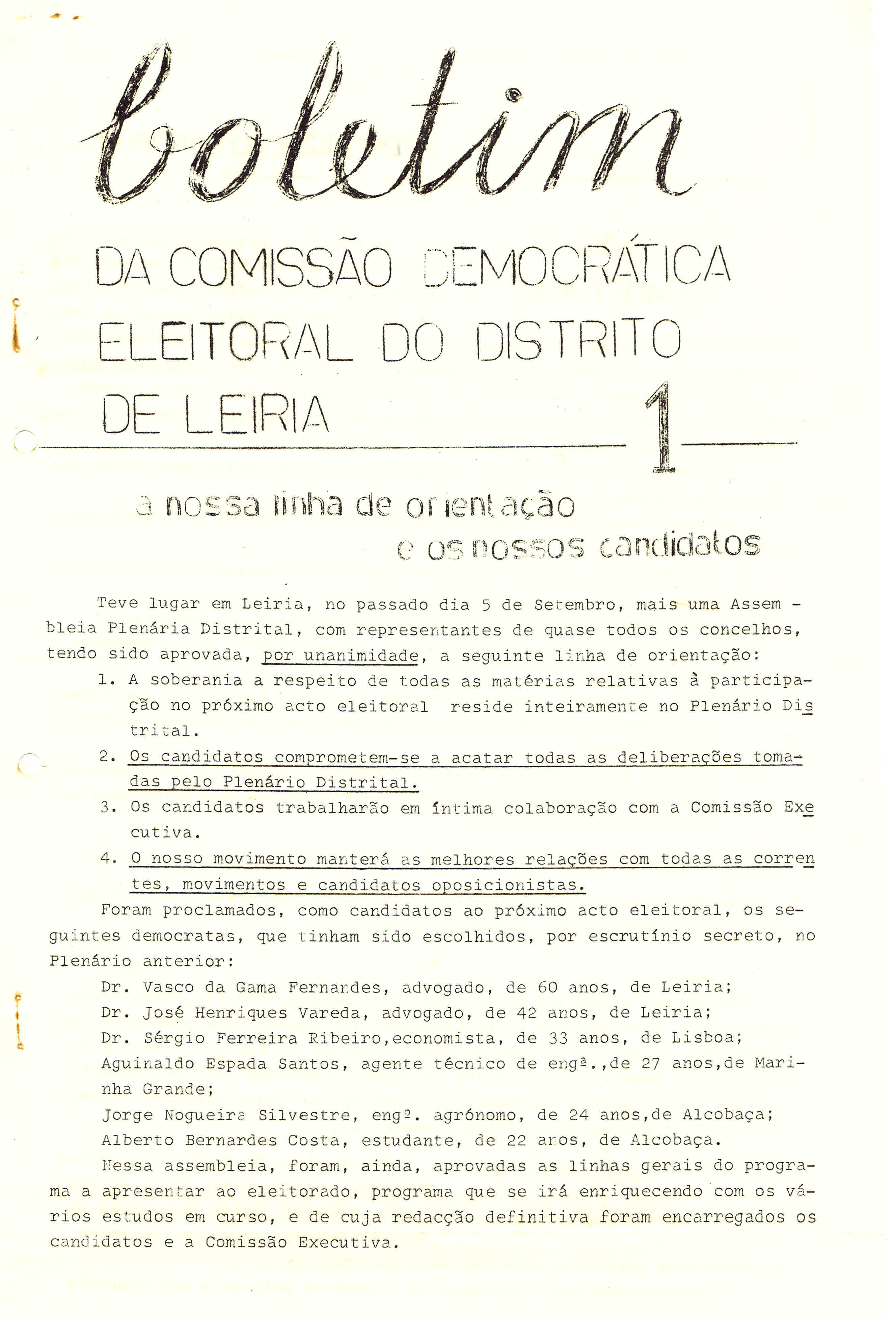 Boletim da Comissão Democrática Eleitoral do Distrito de Leiria, 1 (1969)