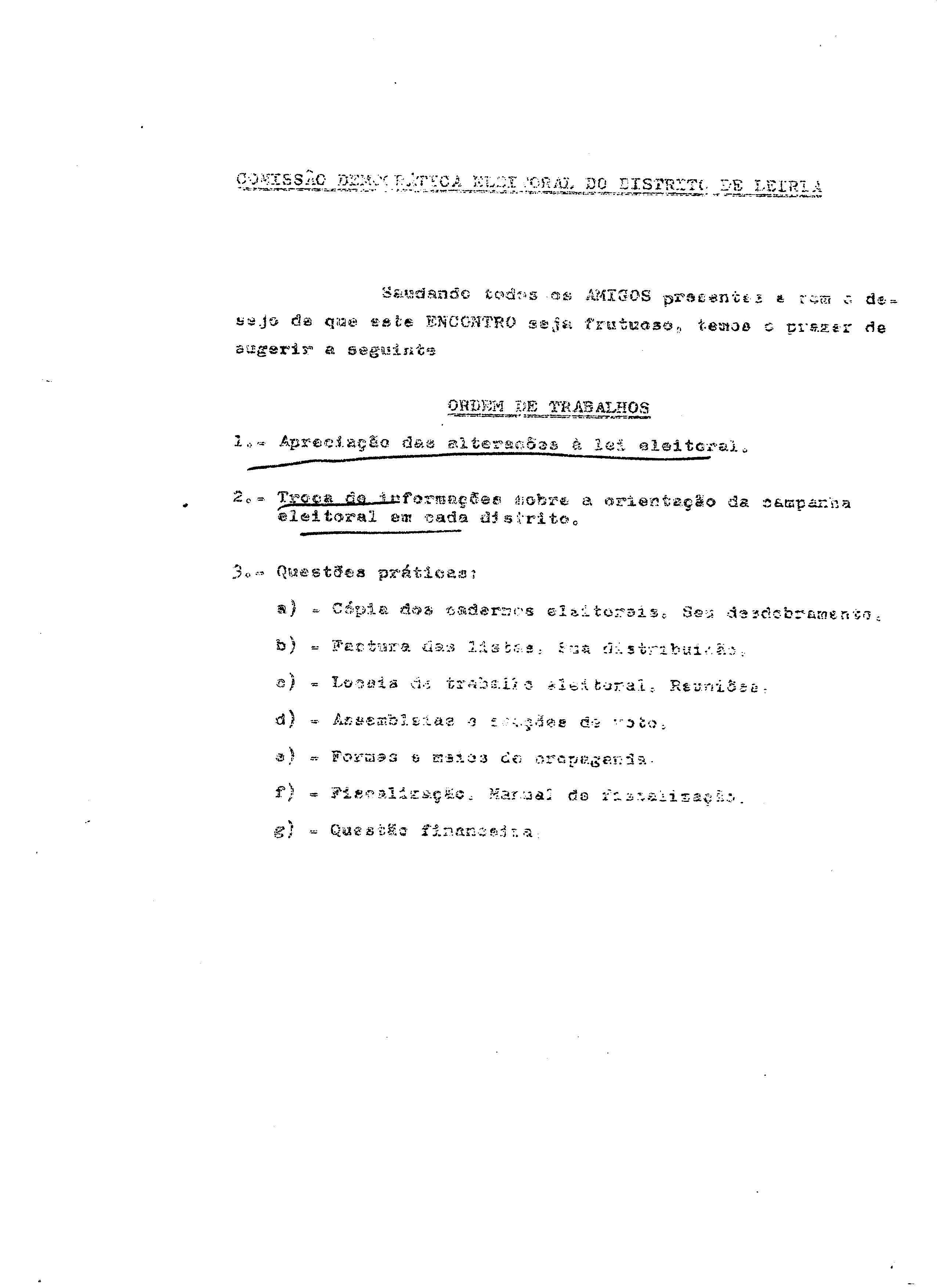 Comissão Democrática Eleitoral do Distrito de Leiria, [Ordem de Trabalhos], s.d. (texto alterado para preto e branco para ser legível).