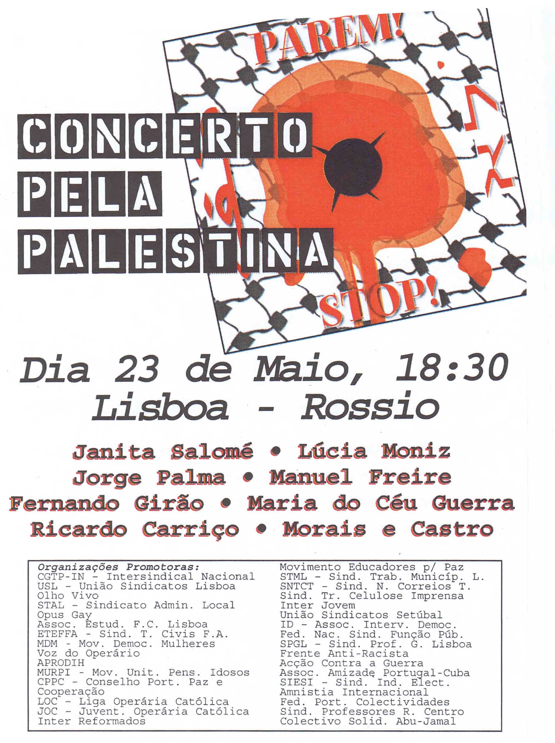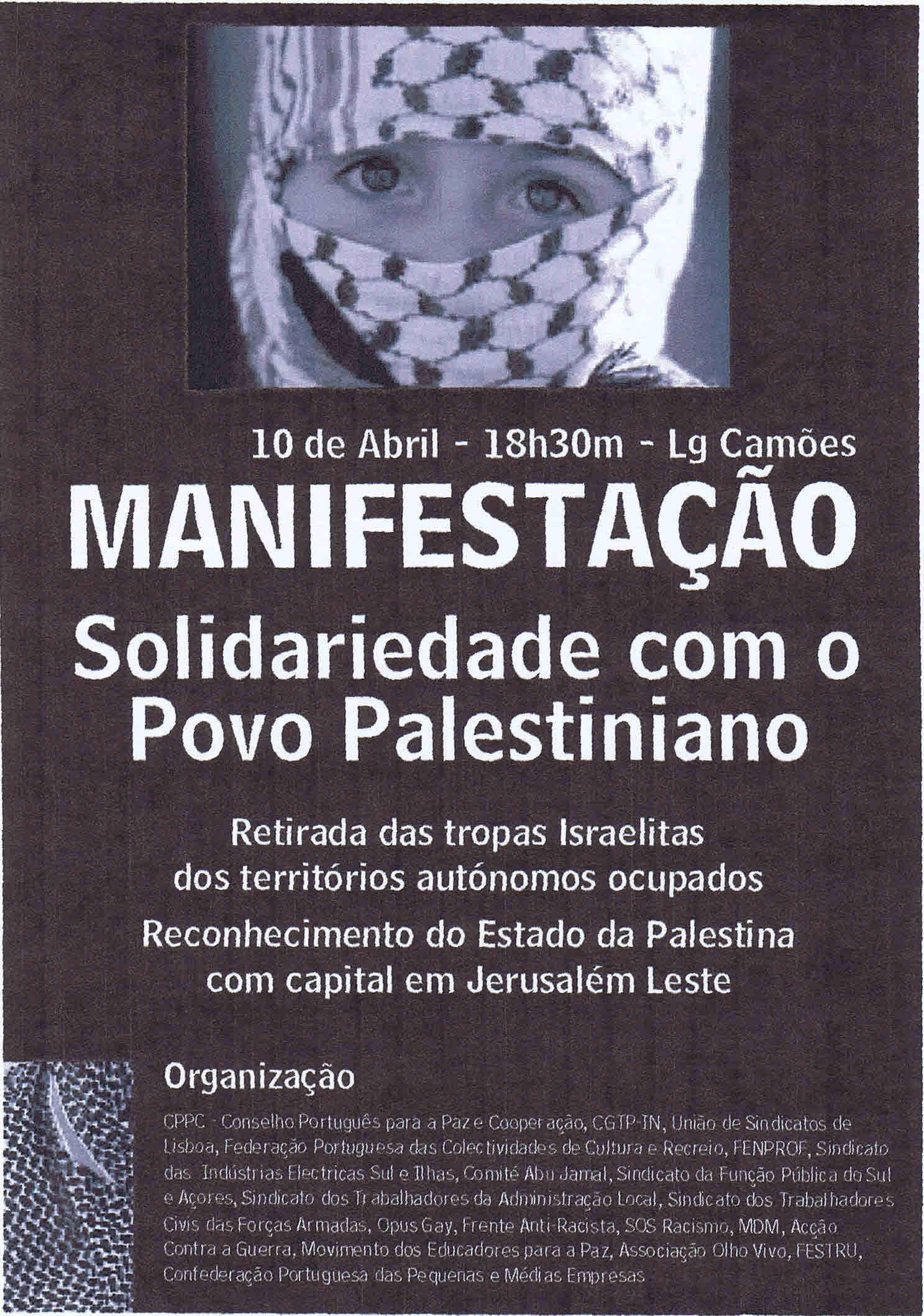 ACÇÃO CONTRA A GUERRA, Amnistia Internacional, ARQUIVO, ASSOCIAÇÃO DE AMIZADE PORTUGAL - CUBA, ATTAC Portugal, BLOCO DE ESQUERDA (BE), COLECTIVO MUMIA ABU-JAMAL / COLECTIVO DE SOLIDARIEDADE COM MUMIA ABU-JAMAL, Comité de Solidariedade com a Palestina, CONSELHO PORTUGUÊS PARA A PAZ E COOPERAÇÃO (CPPC), JUVENTUDE COMUNISTA PORTUGUESA (JCP), LIGA OPERÁRIA CATÓLICA, MOVIMENTO DEMOCRÁTICO DAS MULHERES (MDM), Olho Vivo, Opus Gay, Palestina, Panfletos - folhetos - folhas volantes - prospectos tarjetas, PARTIDO COMUNISTA PORTUGUÊS (PCP), Tribunal Mundial sobre o Iraque - Audiência Portuguesa