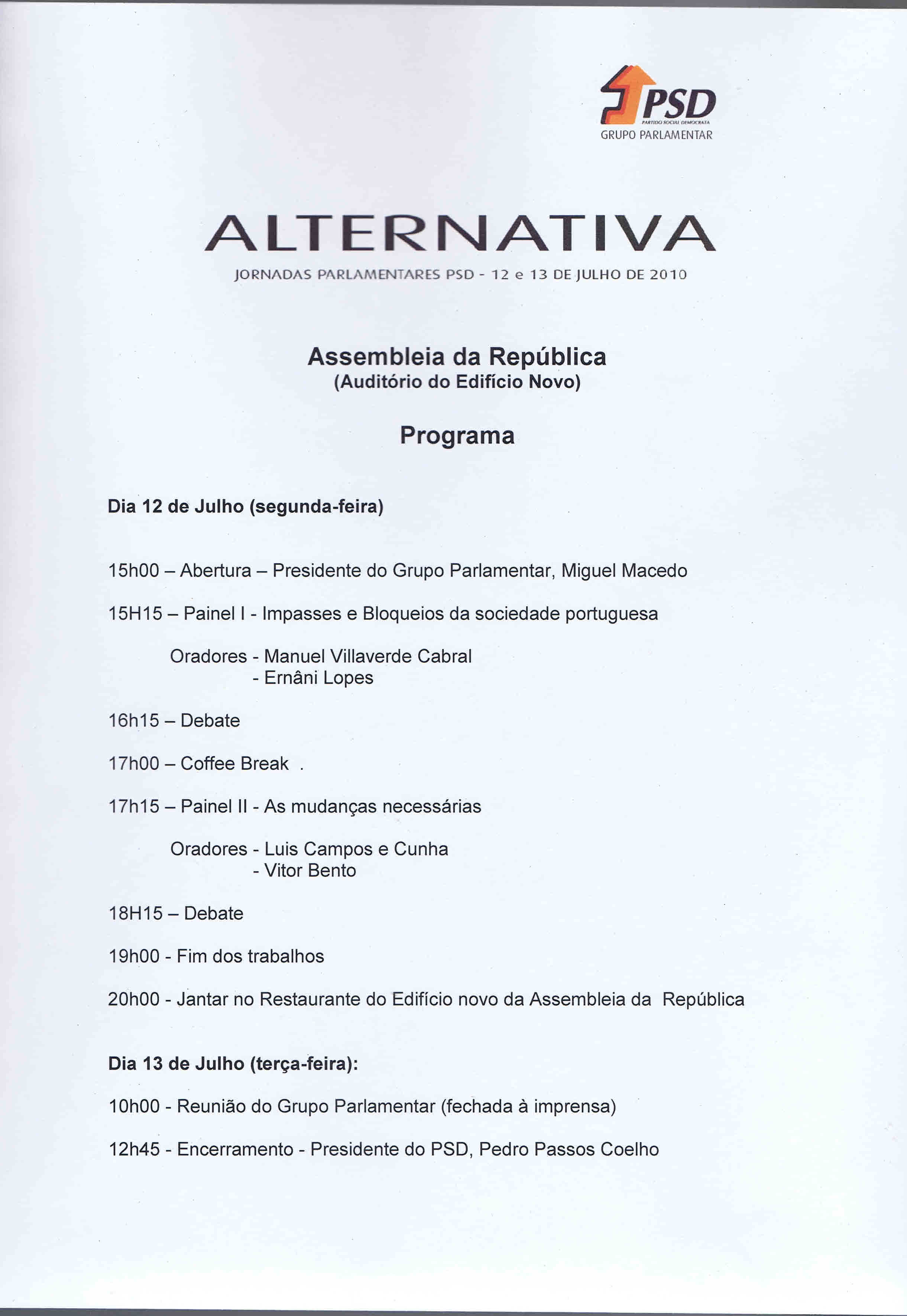 Pasta e Programa das Jornadas.