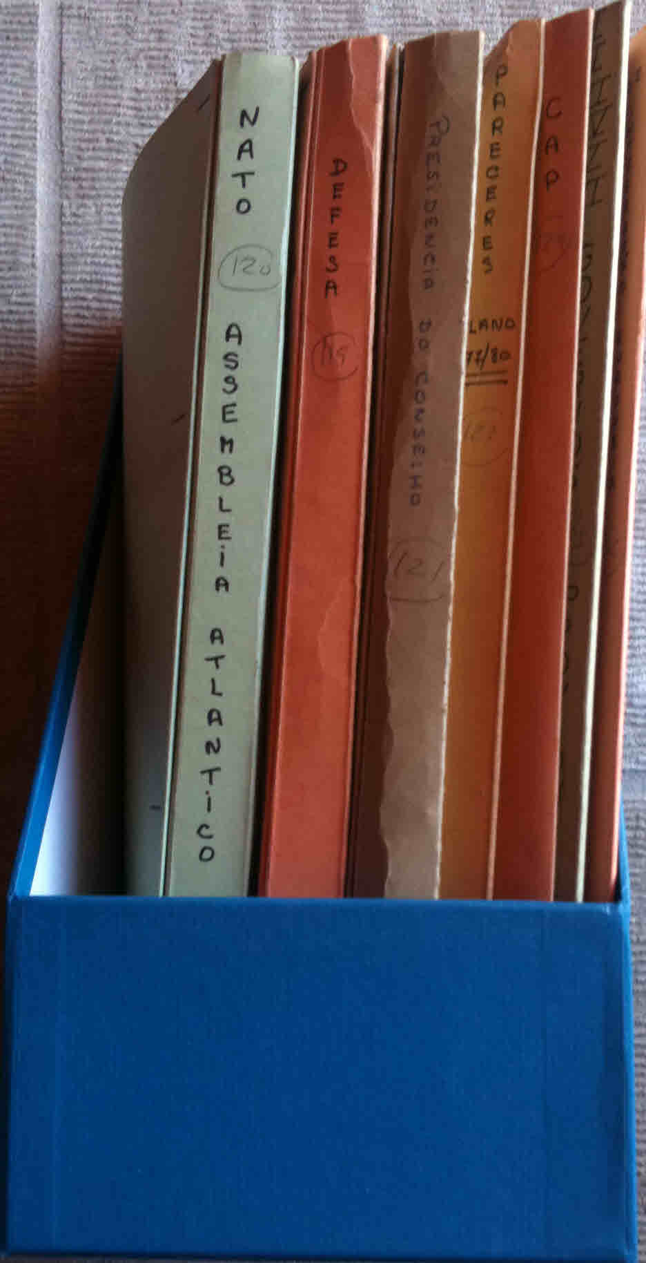 Estas pastas de arquivo de cartolina grossa, que são o grosso do ACM-FSC, encontram-se por inventariar (imagem ao lado).