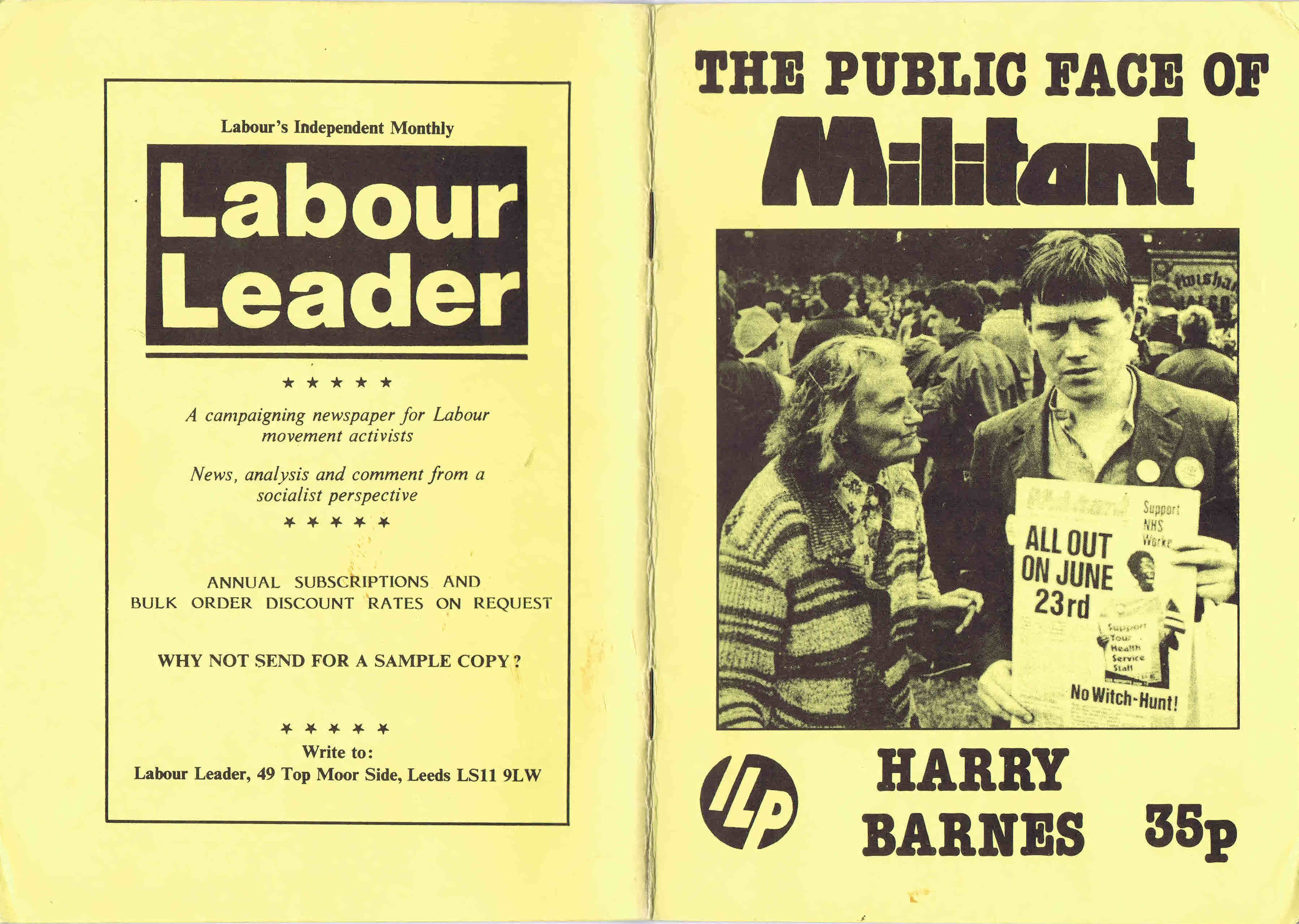 Brochura trabalhista contra o grupo trotsquista Militant.