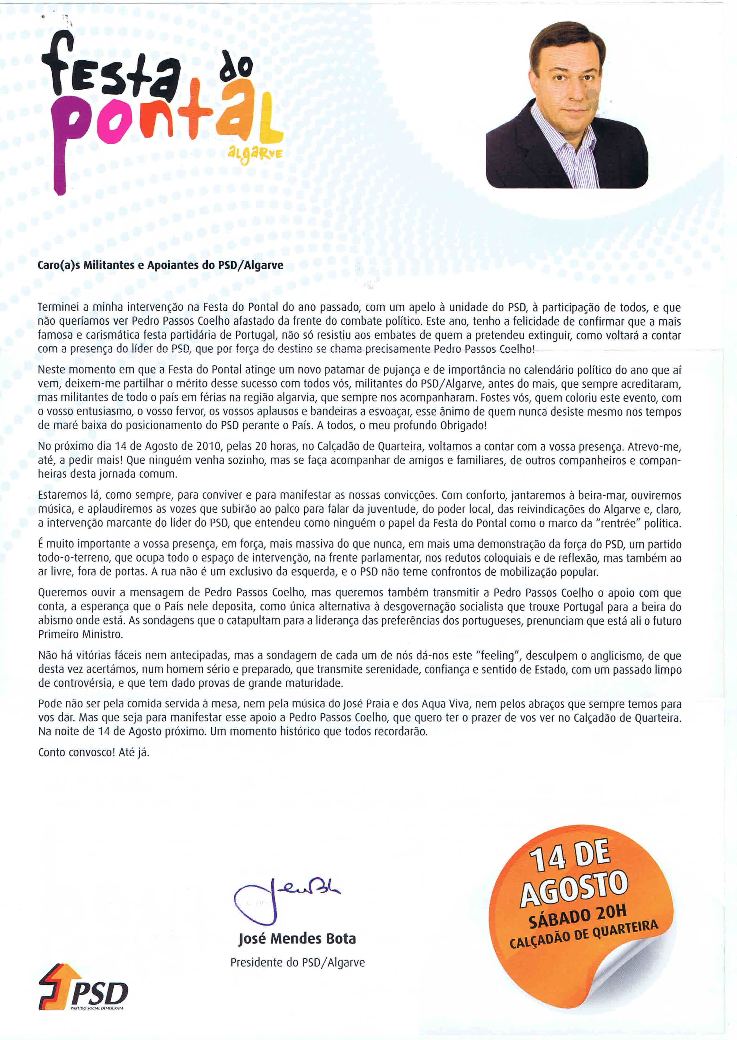 Agradeço ao PSD / Algarve o envio dos materiais da Festa do Pontal.