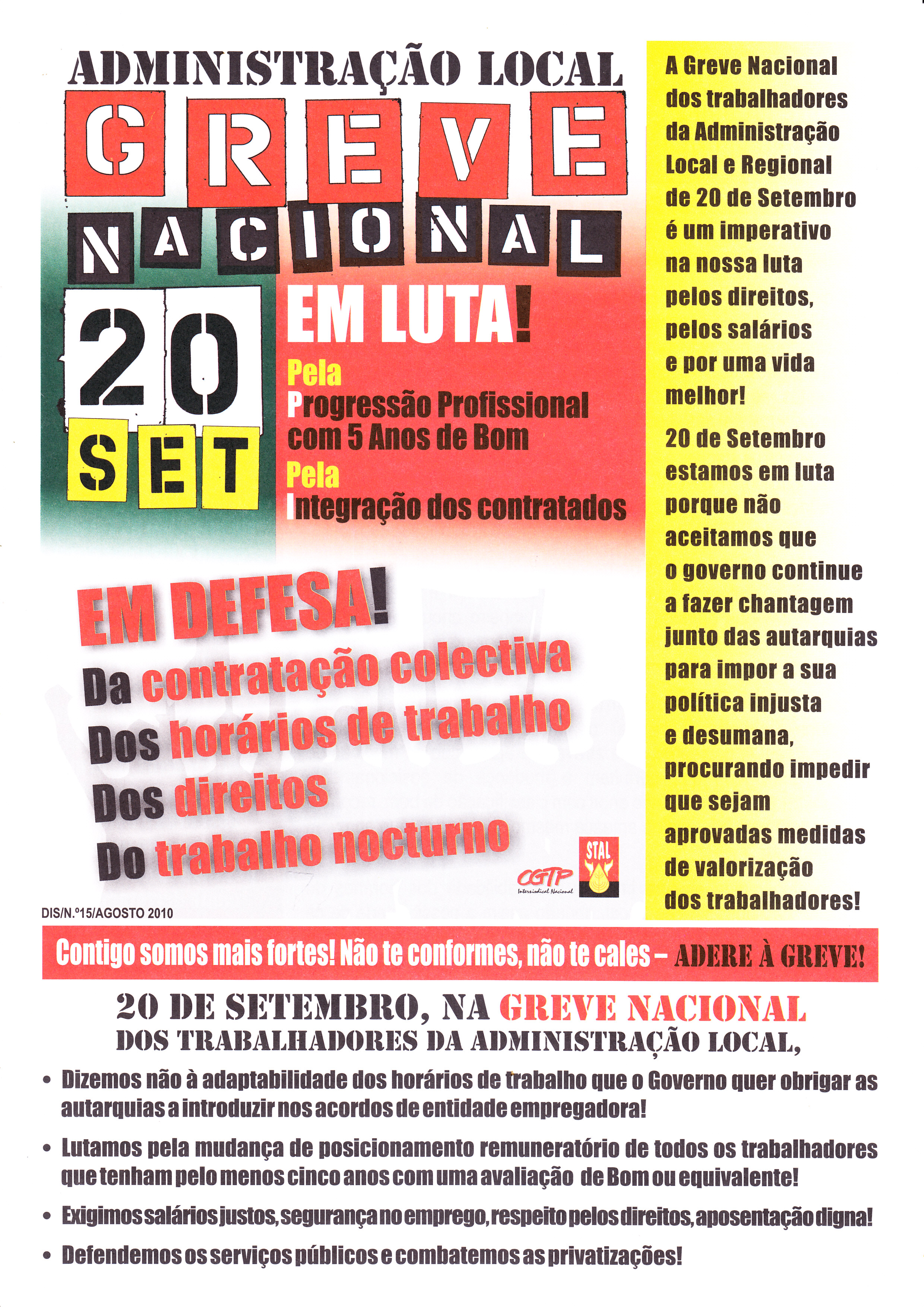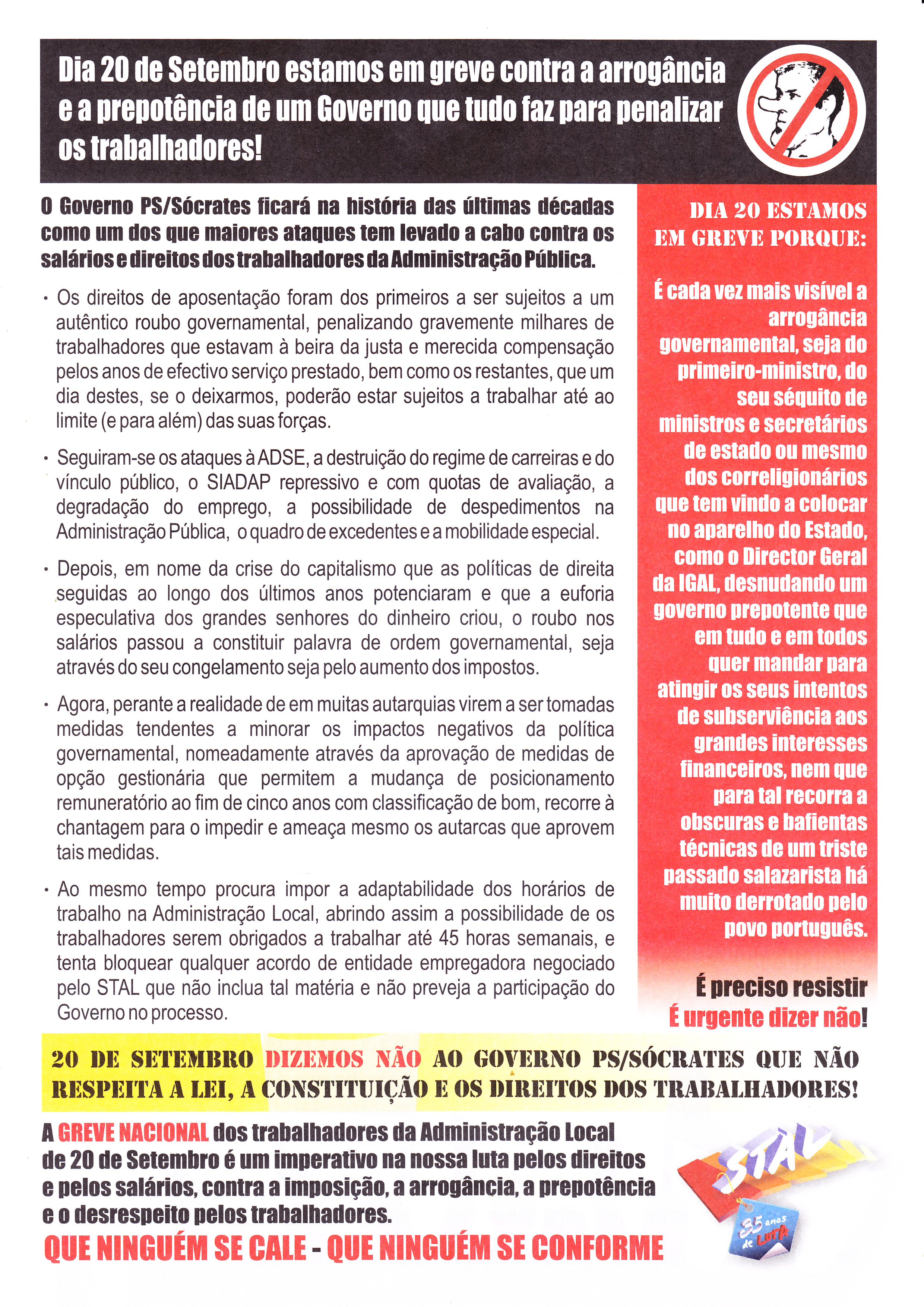 GREVE NACIONAL DOS TRABALHADORES DA ADMINISTRAÇÃO LOCAL (20 DE SETEMBRO DE 2010) 19/09/2010 JPP 2010, ARQUIVO, CONFEDERAÇÃO GERAL DOS TRABALHADORES PORTUGUESES (CGTP), Greves, Panfletos - folhetos - folhas volantes - prospectos tarjetas, SINDICATO NACIONAL DOS TRABALHADORES DA ADMINISTRAÇÃO LOCAL (STAL) 0 Clicar para ampliar. Print (Opens in new window) Print Email a link to a friend (Opens in new window) Email Share on Facebook (Opens in new window) Facebook Share on X (Opens in new window) X Share on LinkedIn (Opens in new window) LinkedIn Like this:Like Loading...