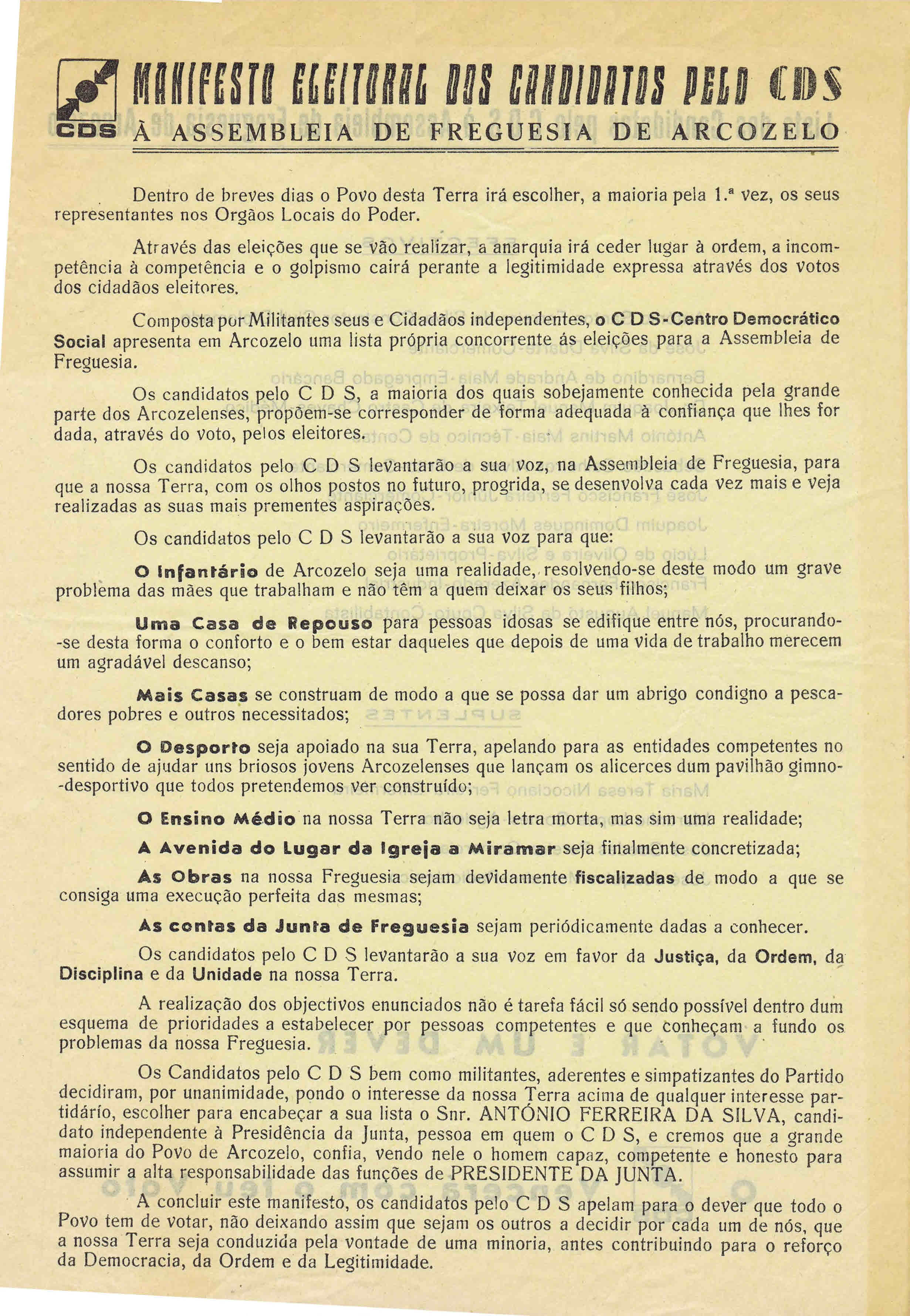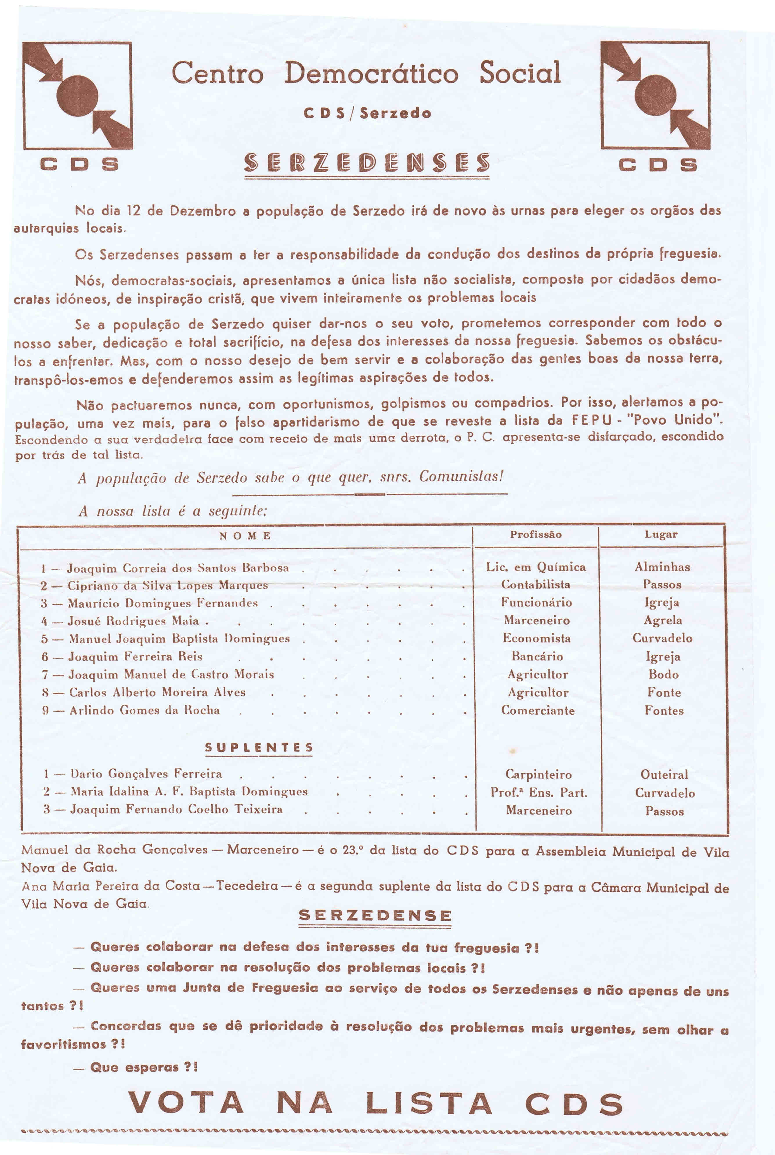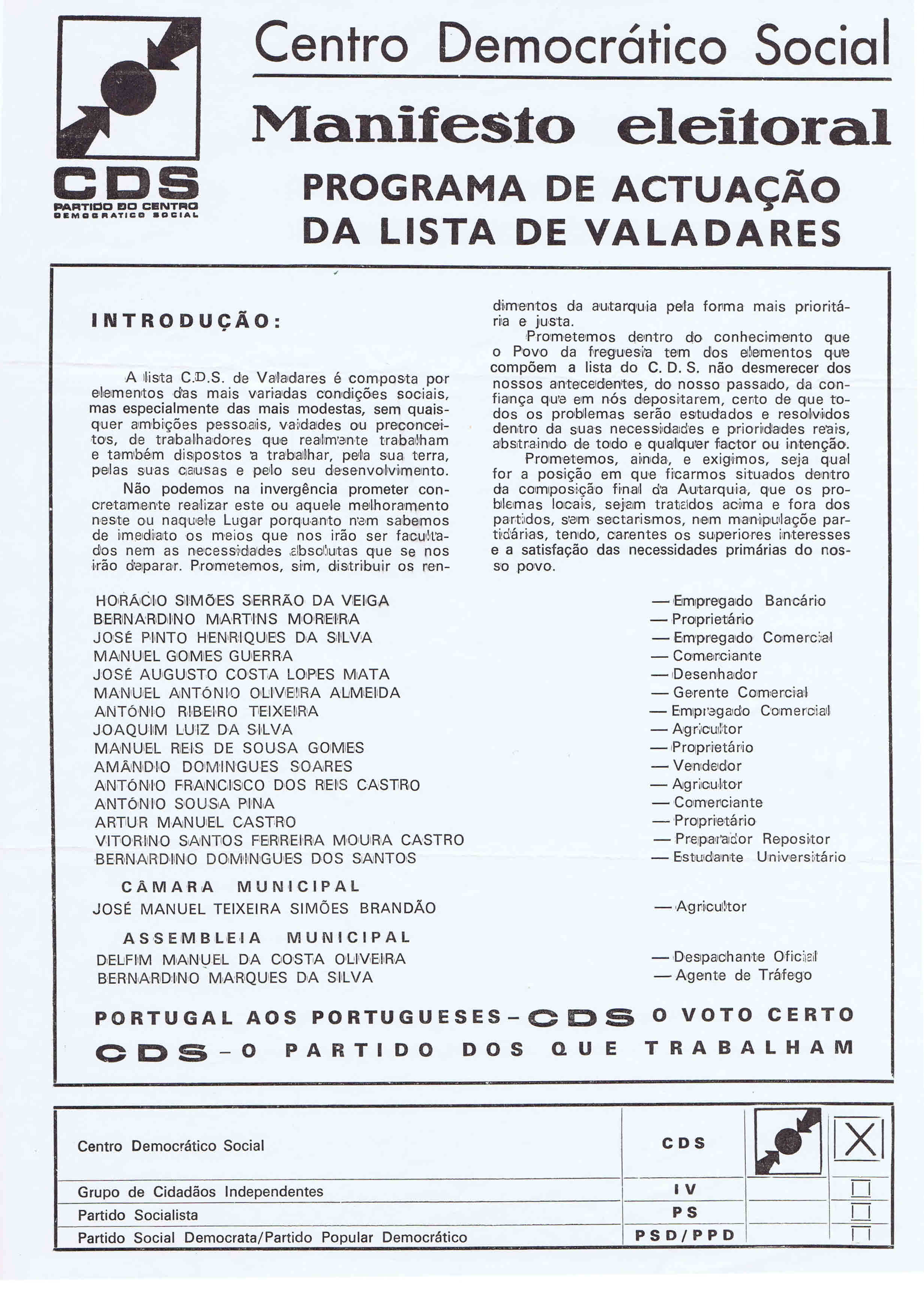 Materiais existentes no ARQUIVO relativos às Eleições Autárquicas de 1976.