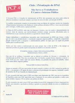 PCP – CÉLULA DA EPAL 02/01/2011 JPP ARQUIVO, Autocolantes, PARTIDO COMUNISTA PORTUGUÊS (PCP) 0 IMAGEM1IMAGEM2DATAAUTORTÍTULOBIOORGGEOEVENTONOTAS 1995/06PCP - CÉLULA DA EPAL 1995/06PCP - CÉLULA DA EPAL Print (Opens in new window) Print Email a link to a friend (Opens in new window) Email Share on Facebook (Opens in new window) Facebook Share on X (Opens in new window) X Share on LinkedIn (Opens in new window) LinkedIn Like this:Like Loading...