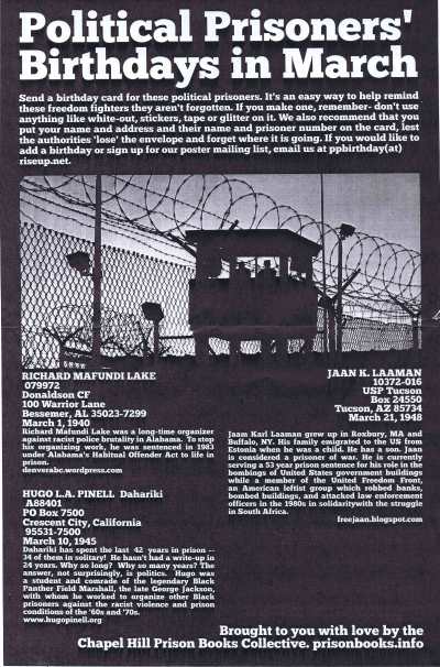 EUA – CHAPEL HILL PRISON BOOKS COLLECTIVE 23/04/2011 JPP ARQUIVO, Cartazes - faixas - outdoors, Chapel Hill Prison Books Collective, EUA, Prisões 0 Cartaz. Print (Opens in new window) Print Email a link to a friend (Opens in new window) Email Share on Facebook (Opens in new window) Facebook Share on X (Opens in new window) X Share on LinkedIn (Opens in new window) LinkedIn Like this:Like Loading...