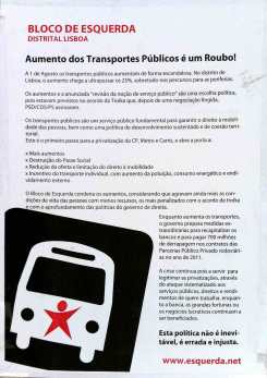 BLOCO DE ESQUERDA – ACTIVIDADES (2º SEMESTRE 2011) 21/10/2011 JPP 2011, ARQUIVO, BLOCO DE ESQUERDA (BE), Cartazes - faixas - outdoors, Panfletos - folhetos - folhas volantes - prospectos tarjetas 0 EM ACTUALIZAÇÃO Cartazes. Mural no Porto. Papel colado. Print (Opens in new window) Print Email a link to a friend (Opens in new window) Email Share on Facebook (Opens in new window) Facebook Share on X (Opens in new window) X Share on LinkedIn (Opens in new window) LinkedIn Like this:Like Loading...