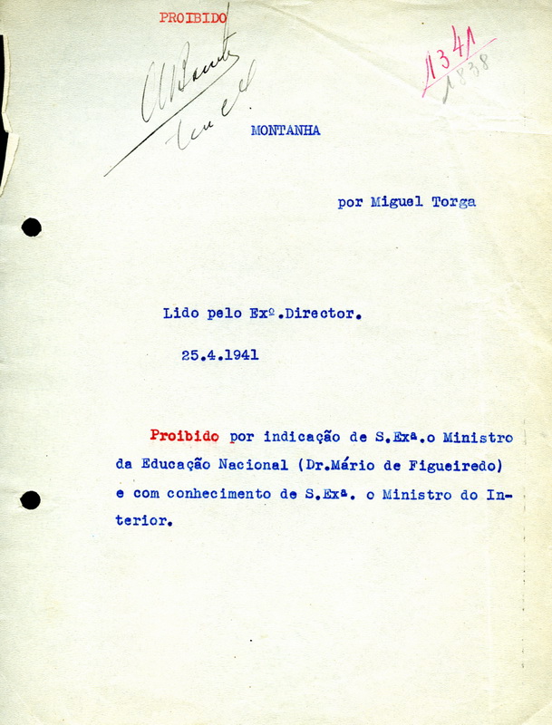 CENSURA – NOTA DE PROIBIÇÃO DE “MONTANHA” DE MIGUEL TORGA (25 DE ABRIL DE 1941) 02/12/2011 JPP 1941, ARQUIVO, ARQUIVO DA CENSURA, Censura, Documentos, Originais dactilografados, Torga, Miguel 0 Print (Opens in new window) Print Email a link to a friend (Opens in new window) Email Share on Facebook (Opens in new window) Facebook Share on X (Opens in new window) X Share on LinkedIn (Opens in new window) LinkedIn Like this:Like Loading...
