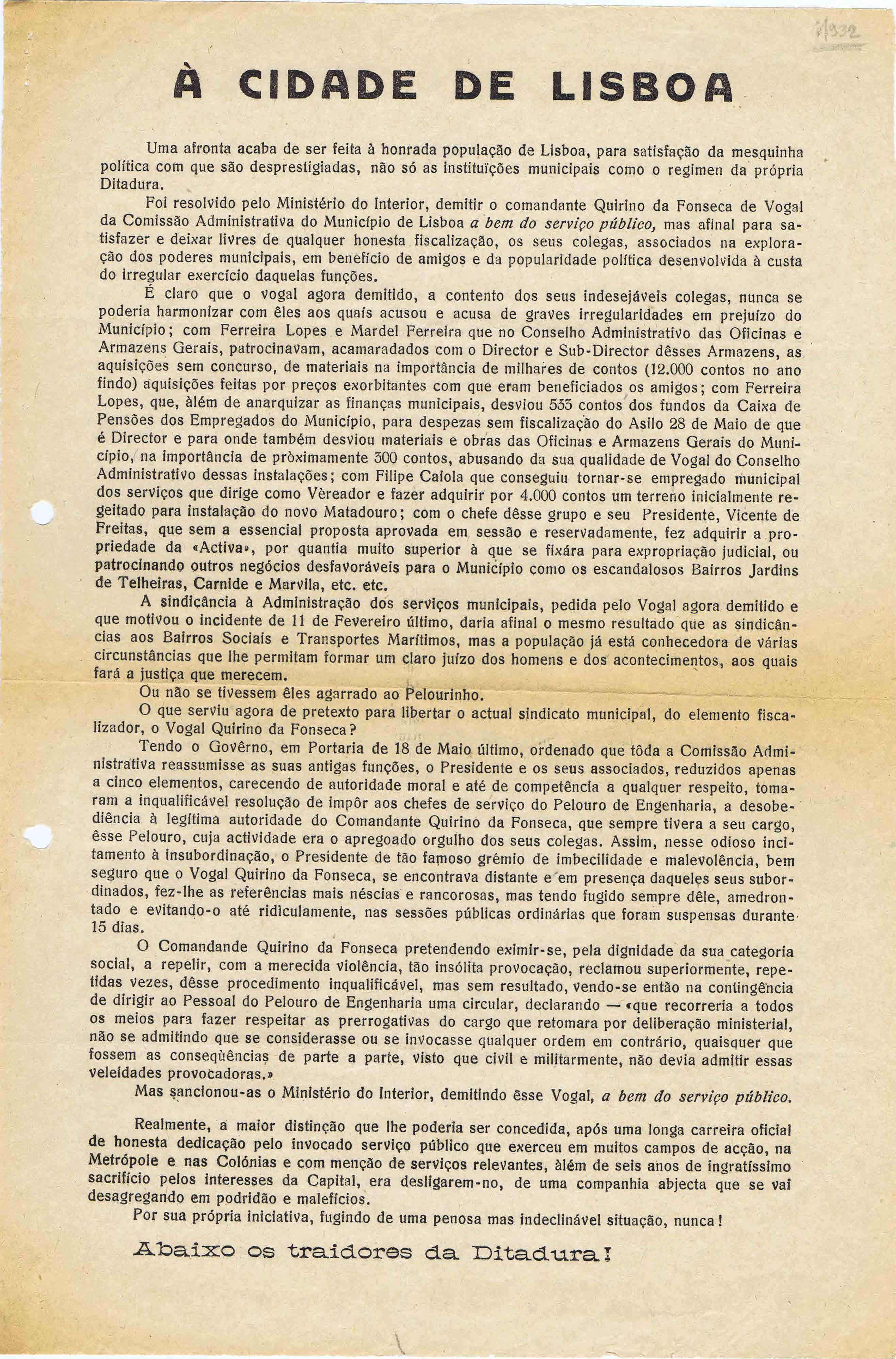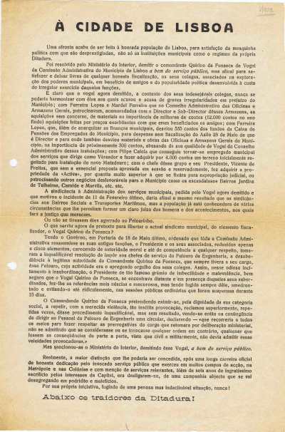 À CIDADE DE LISBOA, S.D.(1932) / TO THE CITY OF LISBON (1932) 02/01/2012 JPP 1932, ARQUIVO, Lisboa, Oposição portuguesa / Publicações clandestinas, Panfletos - folhetos - folhas volantes - prospectos tarjetas 0 Print (Opens in new window) Print Email a link to a friend (Opens in new window) Email Share on Facebook (Opens in new window) Facebook Share on X (Opens in new window) X Share on LinkedIn (Opens in new window) LinkedIn Like this:Like Loading...