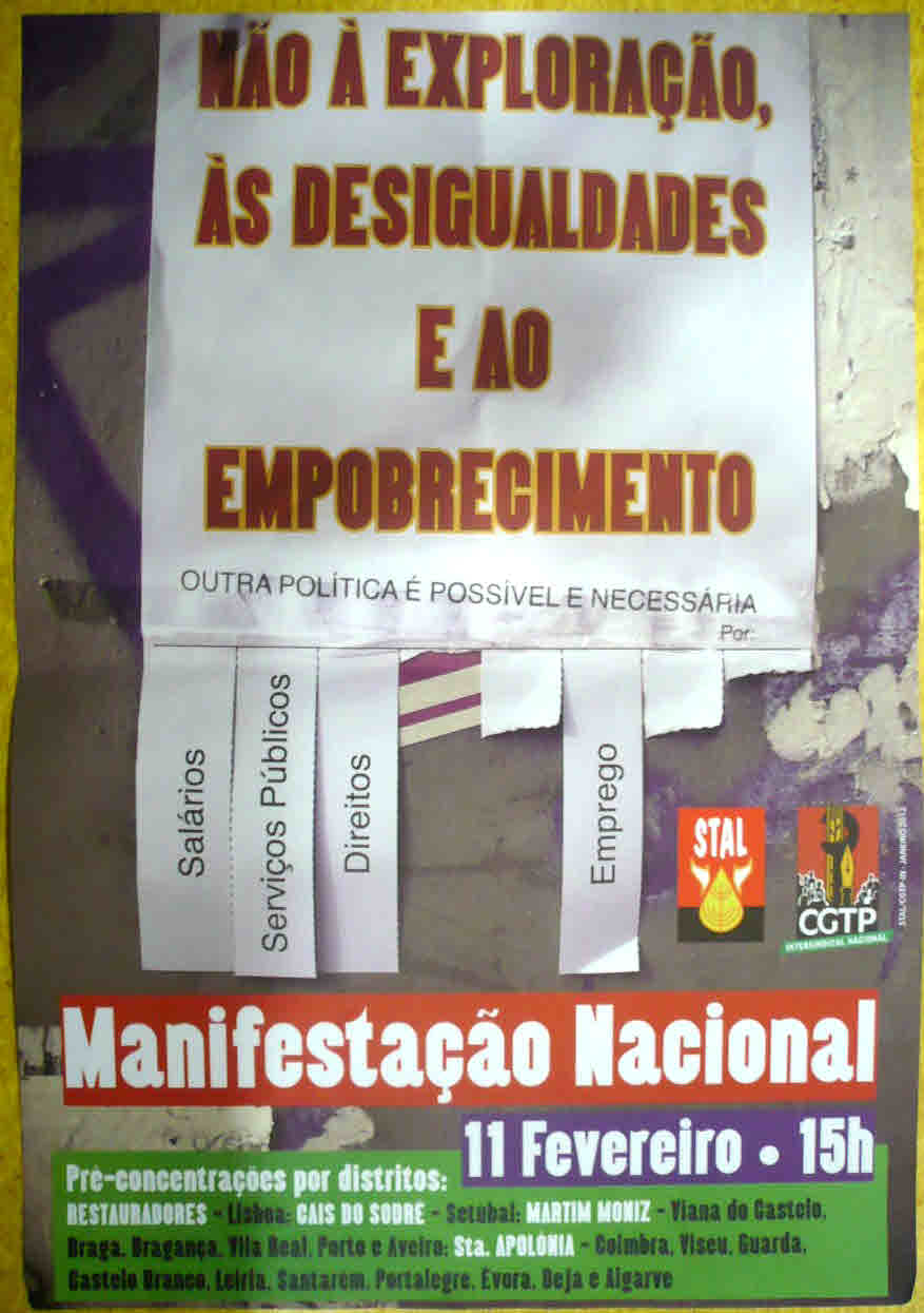 CGTP – MANIFESTAÇÃO (LISBOA, 11 DE FEVEREIRO DE 2012) – PREPARAÇÃO 11/02/2012 JPP 2012, ARQUIVO, Cartazes - faixas - outdoors, CONFEDERAÇÃO GERAL DOS TRABALHADORES PORTUGUESES (CGTP), Lisboa, Manifestações protestos, Panfletos - folhetos - folhas volantes - prospectos tarjetas, Sindicalismo 0 Cartazes e faixas. Print (Opens in new window) Print Email a link to a friend (Opens in new window) Email Share on Facebook (Opens in new window) Facebook Share on X (Opens in new window) X Share on LinkedIn (Opens in new window) LinkedIn Like this:Like Loading...