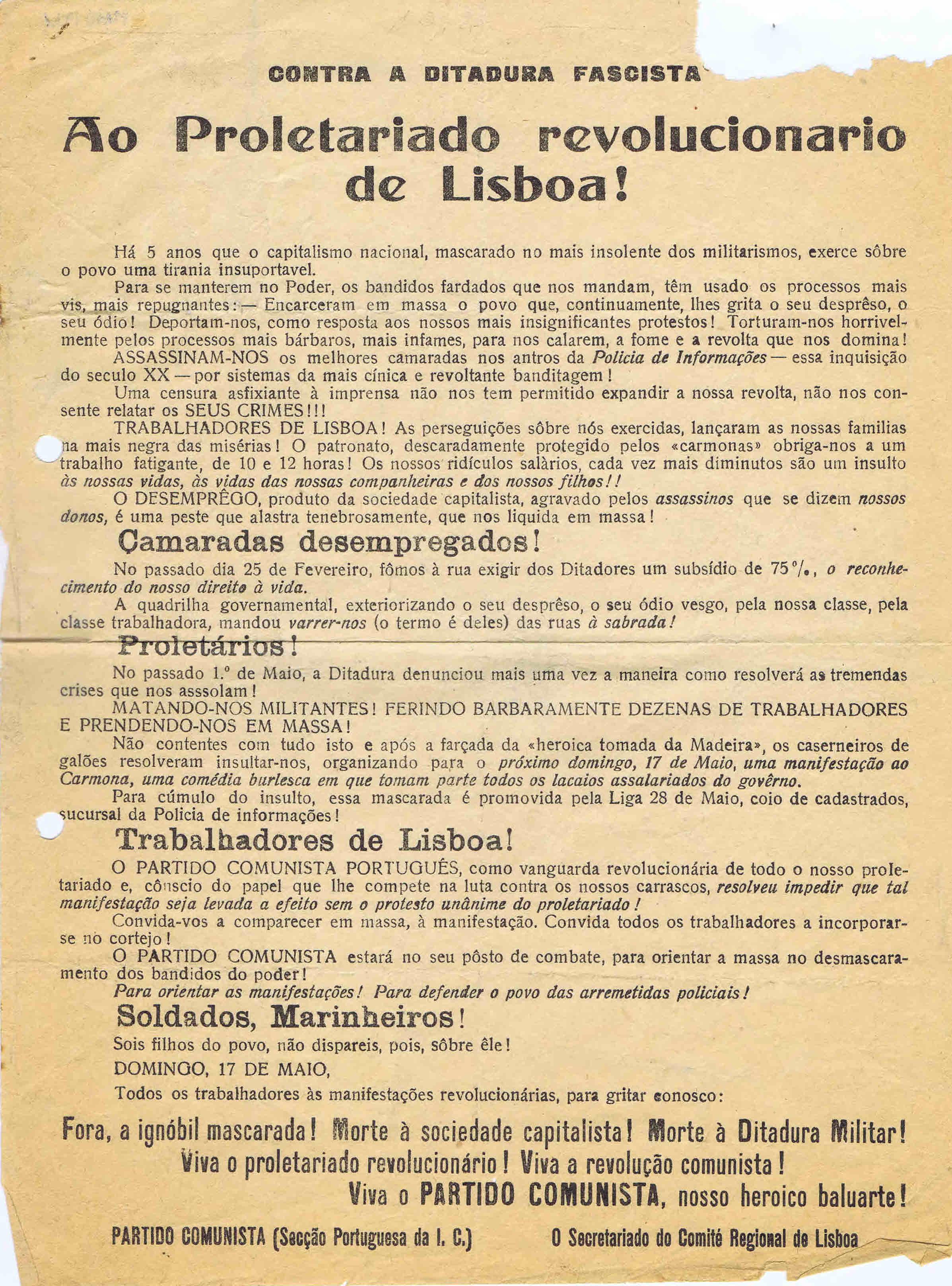 PCP – SECRETARIADO DO COMITÉ REGIONAL DE LISBOA – AO PROLETARIADO REVOLUCIONÁRIO DE LISBOA!, [S.D., 1931?] 27/02/2012 JPP 1931, ARQUIVO, LIGA 28 DE MAIO, Panfletos - folhetos - folhas volantes - prospectos tarjetas, PARTIDO COMUNISTA PORTUGUÊS (PCP) 0 Print (Opens in new window) Print Email a link to a friend (Opens in new window) Email Share on Facebook (Opens in new window) Facebook Share on X (Opens in new window) X Share on LinkedIn (Opens in new window) LinkedIn Like this:Like Loading...