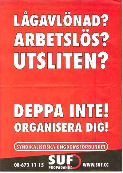 SUÉCIA – SYNDIKALISTISKA UNGDOMFÖRBUNDET (SUF) 31/03/2012 JPP ARQUIVO, Autocolantes, Cartazes - faixas - outdoors, Direkt Aktion, Emblemas - pins - magnetos, Jornais - revistas - periódicos - seriados, Panfletos - folhetos - folhas volantes - prospectos tarjetas, Suécia, SYNDIKALISTISKA UNGDOMFÖRBUNDET (SUF) 0 Cartaz. Pins, autocolantes, panfletos, revista. Print (Opens in new window) Print Email a link to a friend (Opens in new window) Email Share on Facebook (Opens in new window) Facebook Share on X (Opens in new window) X Share on LinkedIn (Opens in new window) LinkedIn Like this:Like Loading...