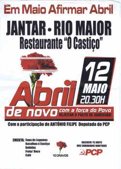 PCP – RIO MAIOR 13/05/2012 JPP 2012, ARQUIVO, Cartazes - faixas - outdoors, PARTIDO COMUNISTA PORTUGUÊS (PCP), Rio Maior 0 Print (Opens in new window) Print Email a link to a friend (Opens in new window) Email Share on Facebook (Opens in new window) Facebook Share on X (Opens in new window) X Share on LinkedIn (Opens in new window) LinkedIn Like this:Like Loading...