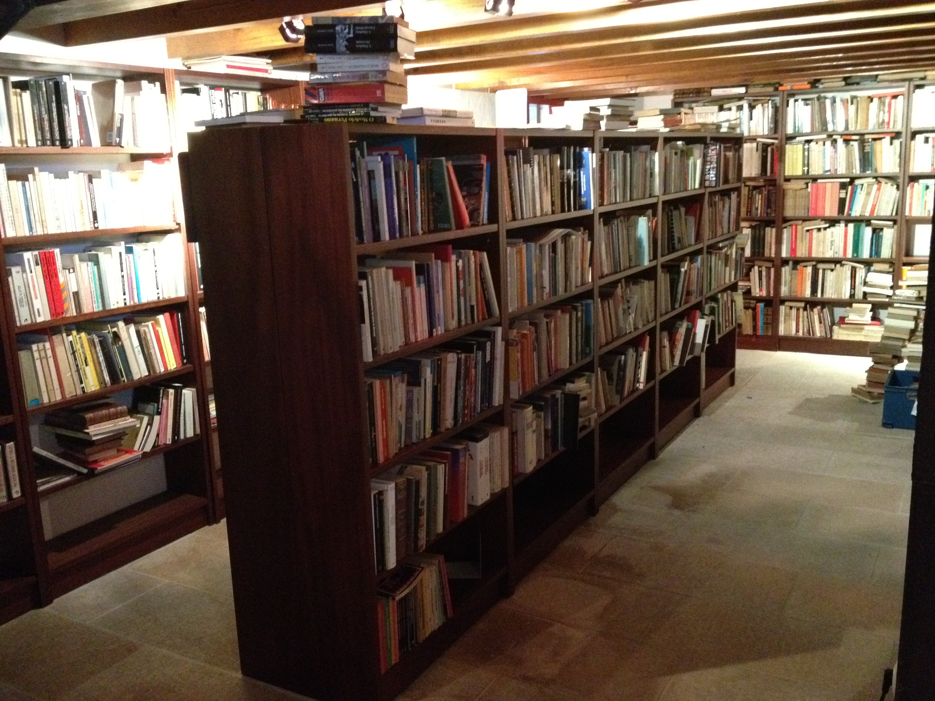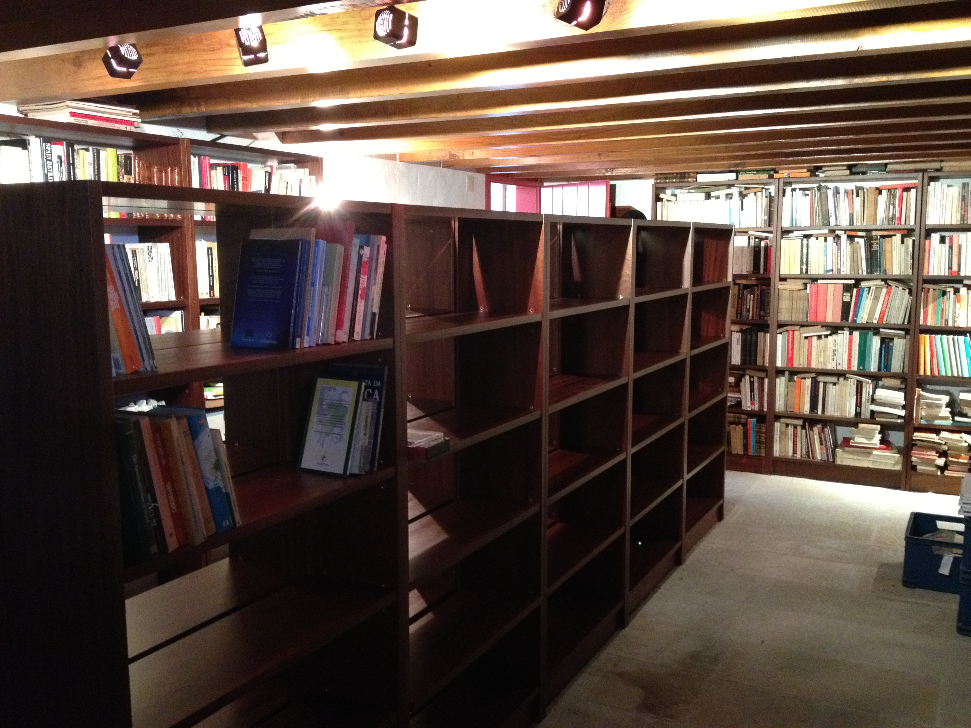 Para além da entrada de livros jornais, revistas, panfletos, papeis, objectos, que recebo, recolho, compro, com todo o gosto, e como o espaço não aumenta facilmente com a necessidade, novas estantes são uma fonte de grande alegria pelas bandas do ARQUIVO / BIBLIOTECA. Entraram dois grupos de estantes, cerca de 60 metros para a parte internacional, e 40 para os livros antigos, anteriores ao século XIX. Como as estantes são omnívoras, só permaneceram vazias pouco tempo. A imagem em cima de hoje de manhã, já não existe. Já estão cheias. Permitiram organizar melhor a secção de livros sobre a América Latina, cujas maiores secções são a brasileira e cubana. Para além disso , organizam Israel e o Médio Oriente, e uma secção sobre a guerra em geral, história´da guerra, teoria e estratégia, e duas secções especiais sobre a Primeira e a Segunda Guerra Mundial.