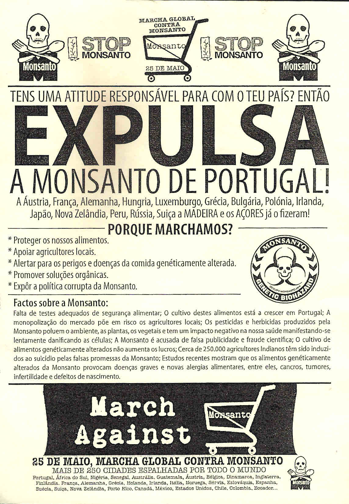 MARCHA CONTRA MONSANTO (LISBOA, 25 DE MAIO DE 2013) – MATERIAIS DISTRIBUÍDOS 26/05/2013 JPP 2013, ARQUIVO, Ecologia / Ambiente / Causas ambientais, FRENTE DO ALGARVE LIVRE DE TRANSGÉNICOS, Lisboa, Manifestações protestos, Objectos, Panfletos - folhetos - folhas volantes - prospectos tarjetas, PARTIDO PELOS ANIMAIS E PELA NATUREZA / PESSOAS ANIMAIS NATUREZA (PAN), REDE PORTUGUESA DE VARIEDADES TRADICIONAIS 0 Ver MARCHA CONTRA MONSANTO (LISBOA, 25 DE MAIO DE 2013) – 2ª série MARCHA CONTRA MONSANTO (LISBOA, 25 DE MAIO DE 2013) Print (Opens in new window) Print Email a link to a friend (Opens in new window) Email Share on Facebook (Opens in new window) Facebook Share on X (Opens in new window) X Share on LinkedIn (Opens in new window) LinkedIn Like this:Like Loading...