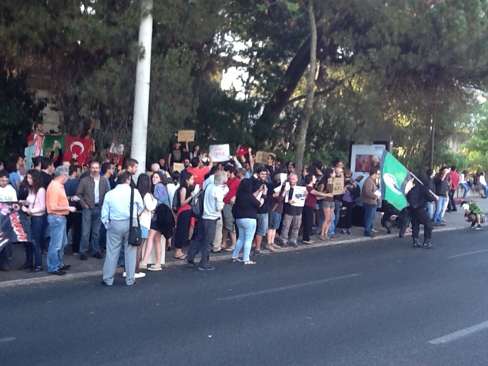 CONCENTRAÇÃO JUNTO DA EMBAIXADA DA TURQUIA EM SOLIDARIEDADE COM OS MANIFESTANTES TURCOS (LISBOA, 5 DE JUNHO DE 2913) 05/06/2013 JPP 2013, ARQUIVO, Fotografias, Lisboa, Manifestações protestos, Turquia 0 Print (Opens in new window) Print Email a link to a friend (Opens in new window) Email Share on Facebook (Opens in new window) Facebook Share on X (Opens in new window) X Share on LinkedIn (Opens in new window) LinkedIn Like this:Like Loading...