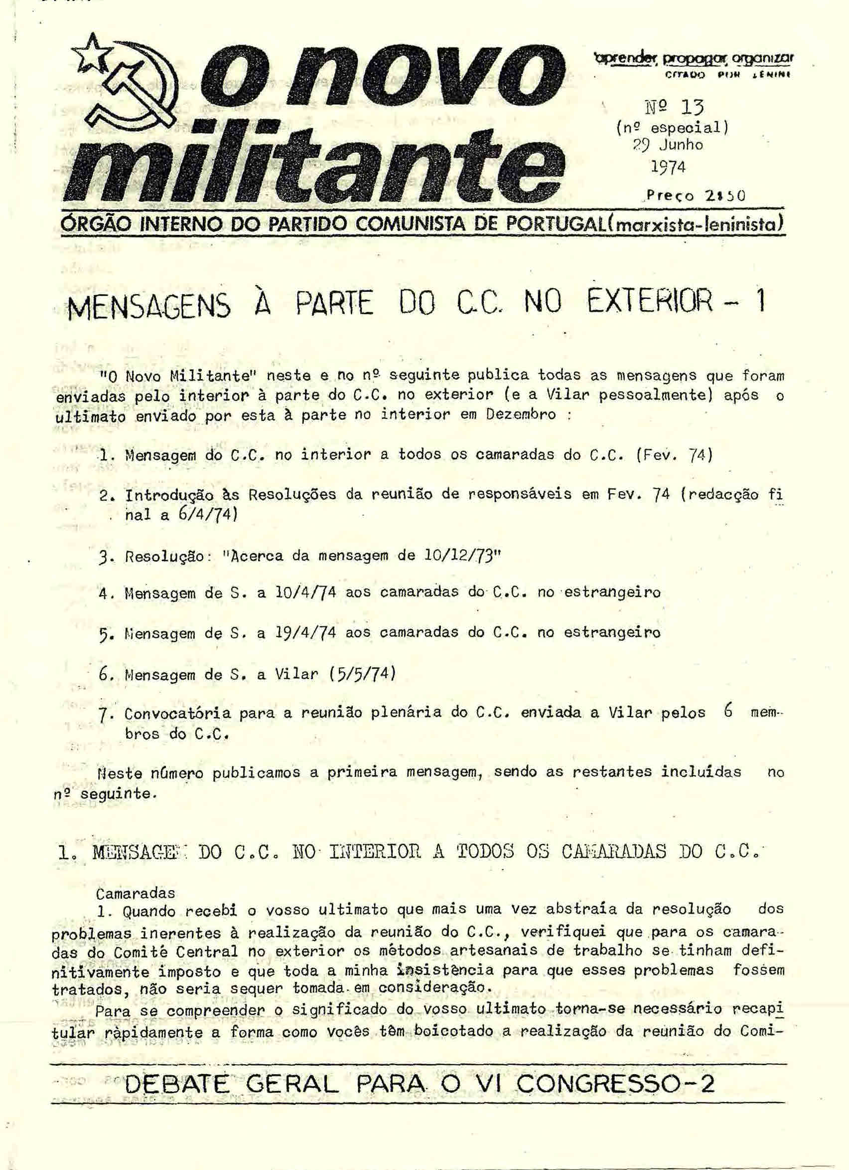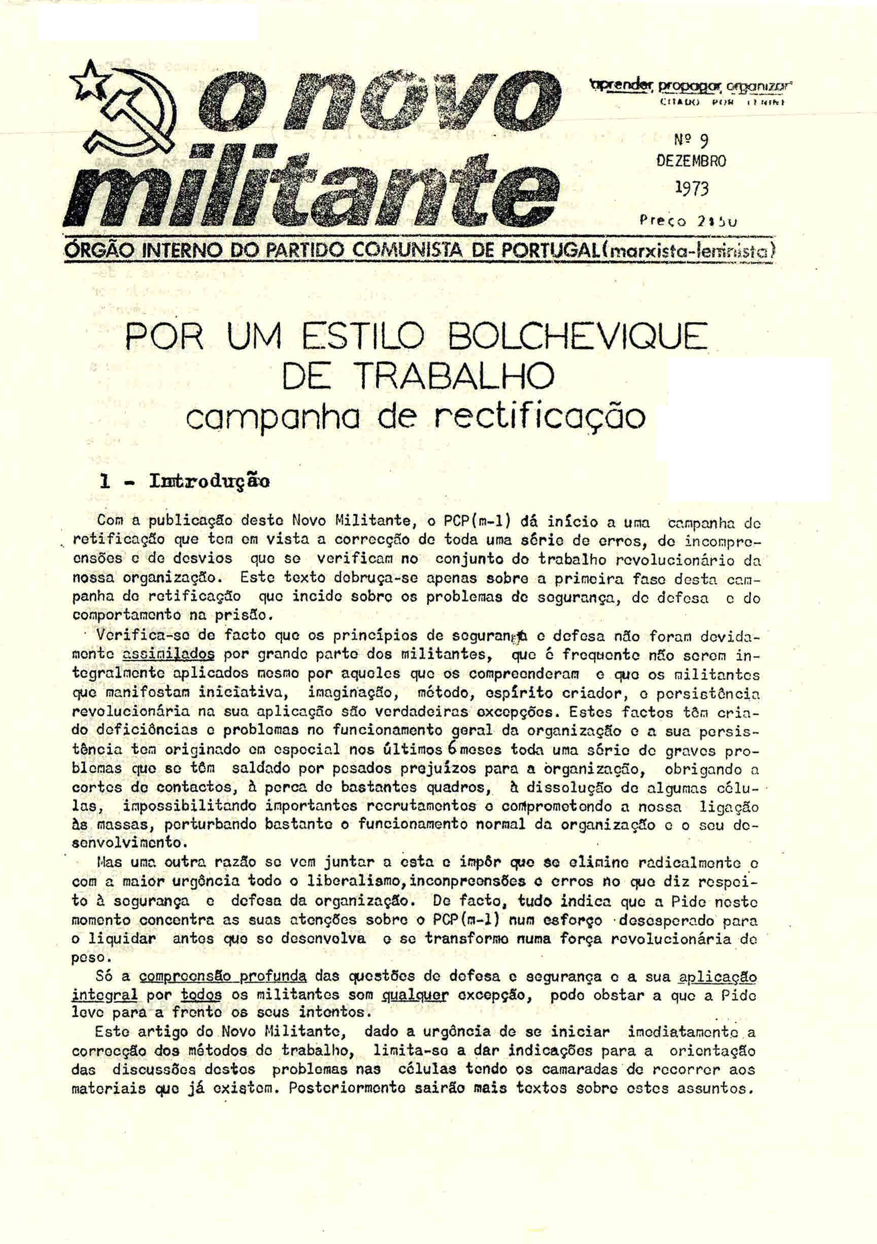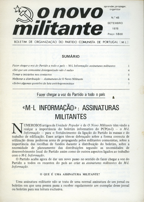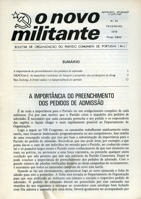 Os números anteriores ao 25 de Abril de 1974 estão incluídos em AS ARMAS DE PAPEL. PUBLICAÇÕES PERIÓDICAS CLANDESTINAS E DO EXÍLIO LIGADAS A MOVIMENTOS RADICAIS DE ESQUERDA CULTURAL E POLÍTICA (1963-1974). Existem números duplicados devidos à divisão do PCP(ML) em dois grupos ambos usando o mesmo título. A partir de 1975, todos os números são de responsabilidade do PCP(ML) ligado a “Vilar”.