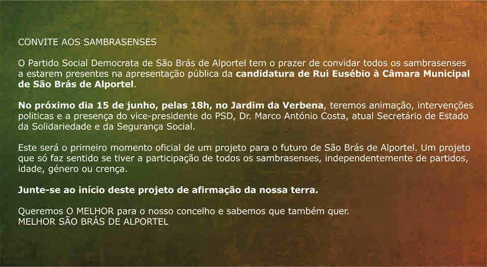 ELEIÇÕES AUTÁRQUICAS DE 2013 – S. BRAS DE ALPORTEL – PSD 22/06/2013 JPP 2013, 2013- Eleições autárquicas, ARQUIVO, PARTIDO SOCIAL-DEMOCRATA (PSD), Processos eleitorais, São Brás de Alportel 0 Print (Opens in new window) Print Email a link to a friend (Opens in new window) Email Share on Facebook (Opens in new window) Facebook Share on X (Opens in new window) X Share on LinkedIn (Opens in new window) LinkedIn Like this:Like Loading...