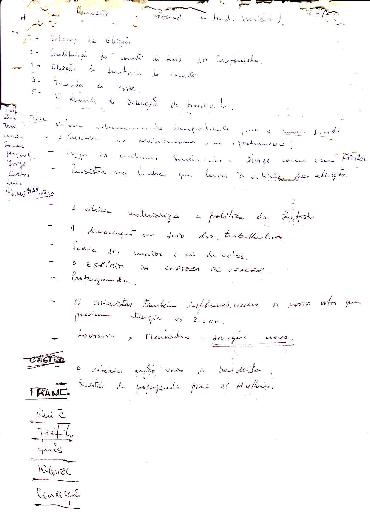 Notas manuscritas de um activista do STL no verso dos documentos.