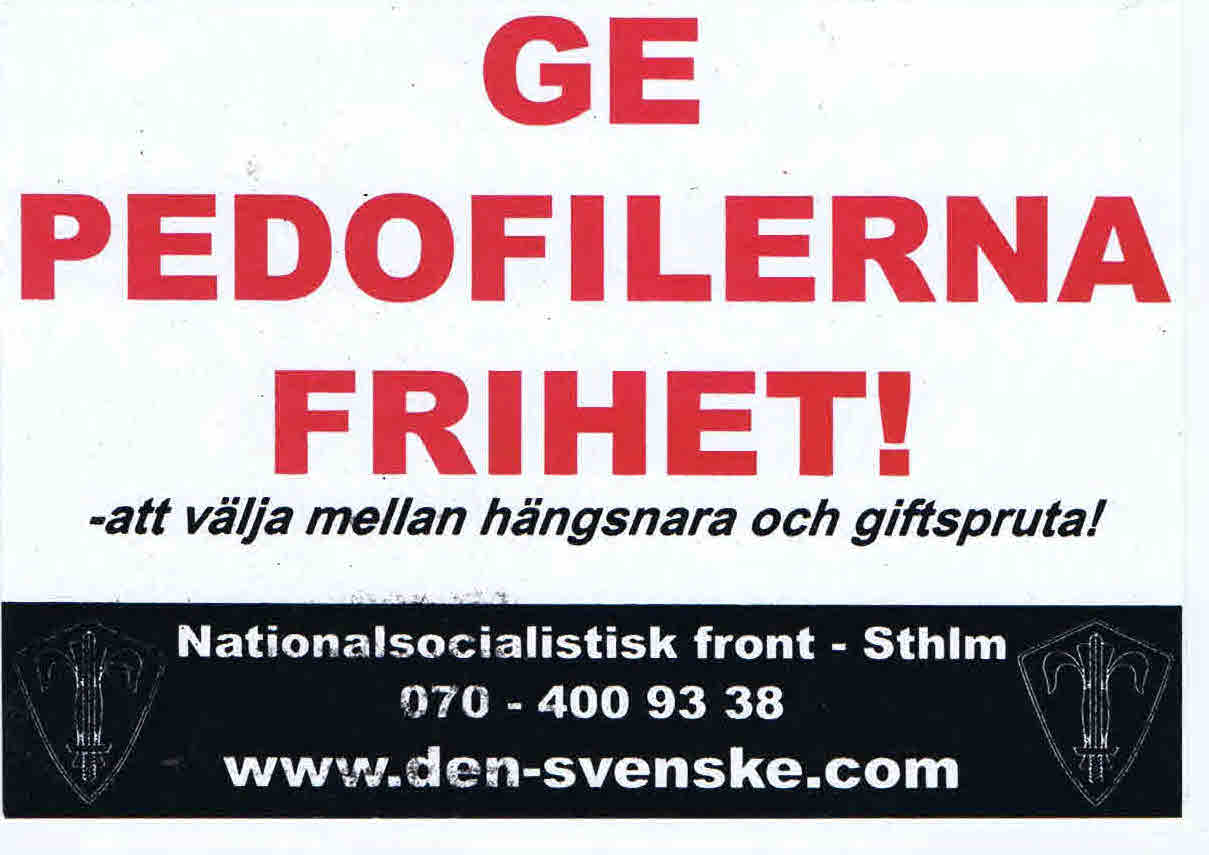 SUÉCIA – NATIONALSOCIALISTISK FRONT 15/08/2013 JPP ARQUIVO, Autocolantes, COLECÇÃO DA DIREITA RADICAL, Direita radical - nacionalistas revolucionários - extrema-direita, NATIONALSOCIALISTISK FRONT, Suécia 0 Print (Opens in new window) Print Email a link to a friend (Opens in new window) Email Share on Facebook (Opens in new window) Facebook Share on X (Opens in new window) X Share on LinkedIn (Opens in new window) LinkedIn Like this:Like Loading...