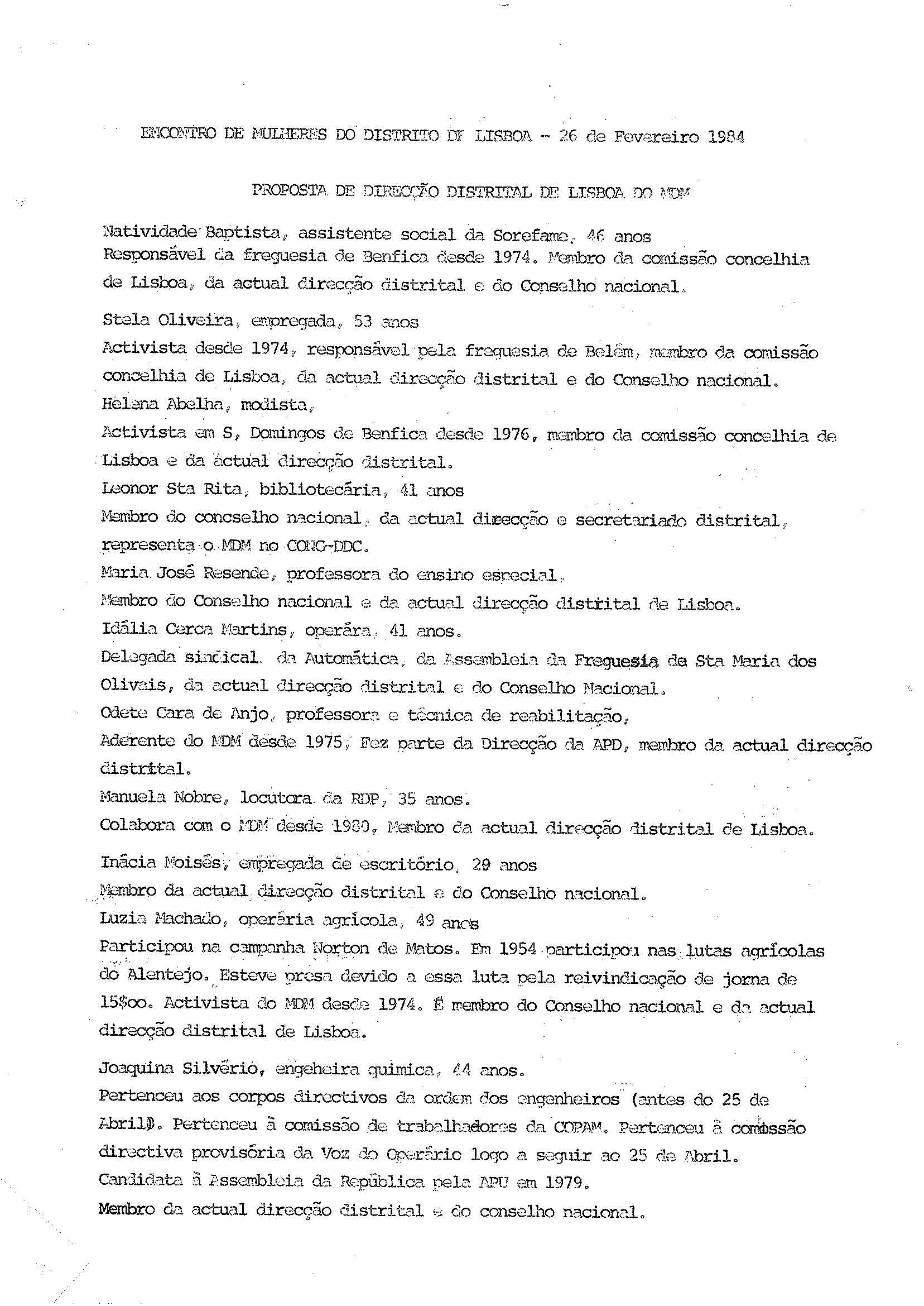 Encontro Mulheres Distrito Lisboa – Proposta Direcção Distrital Lisboa