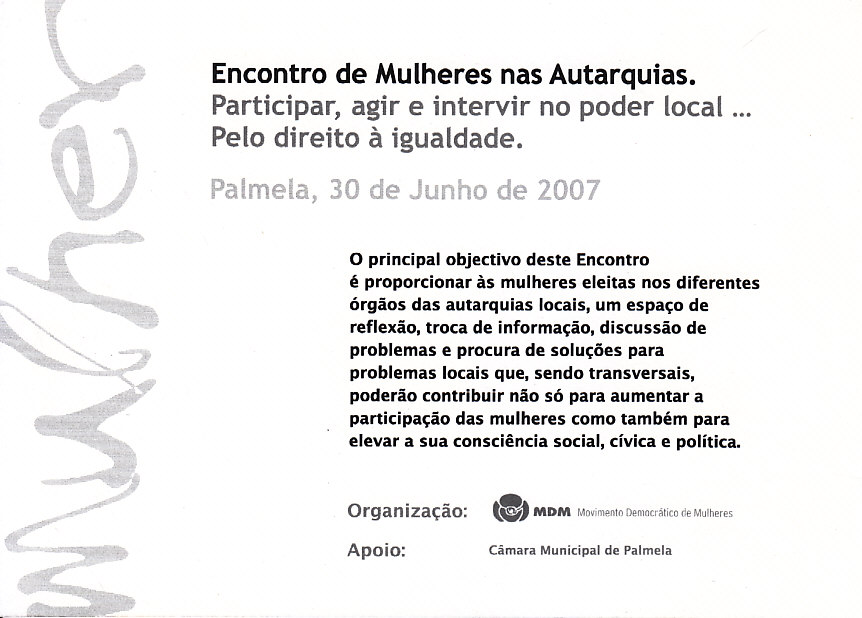 MDM – 2007 18/08/2013 JPP 2007, ARQUIVO, MOVIMENTO DEMOCRÁTICO DAS MULHERES (MDM), Postais 0 Click to print (Opens in new window) Print Click to email a link to a friend (Opens in new window) Email Click to share on Facebook (Opens in new window) Facebook Click to share on X (Opens in new window) X Click to share on LinkedIn (Opens in new window) LinkedIn Like this:Like Loading...