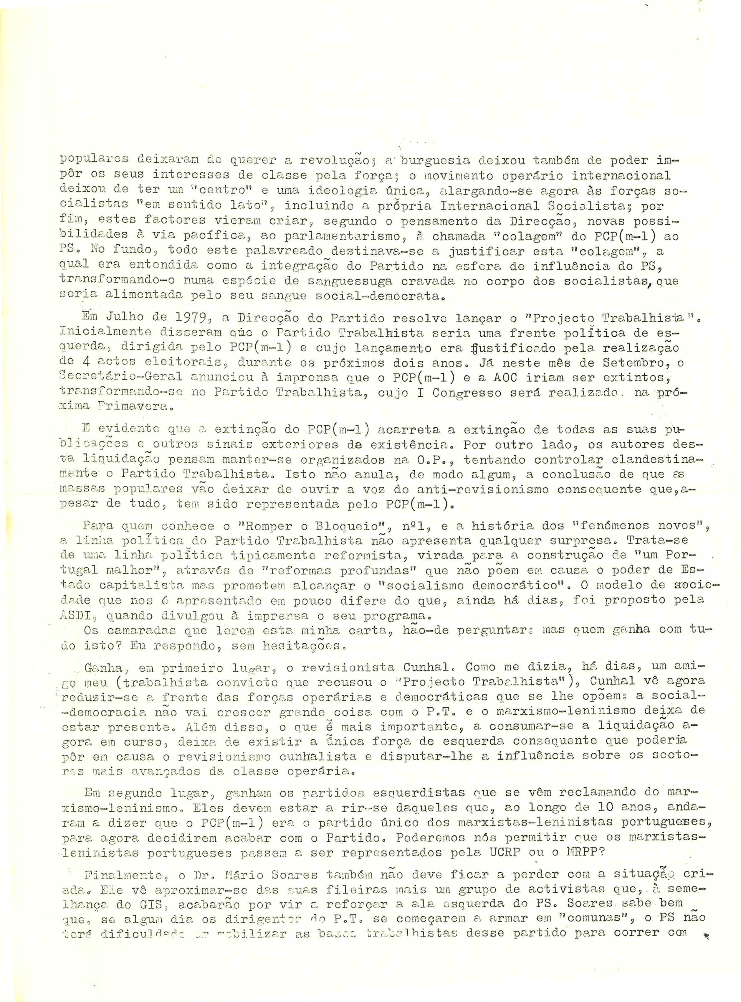 PROCESSO DE DISSOLUÇÃO DO PCP(ML) E CRIAÇÃO DO PARTIDO TRABALHISTA