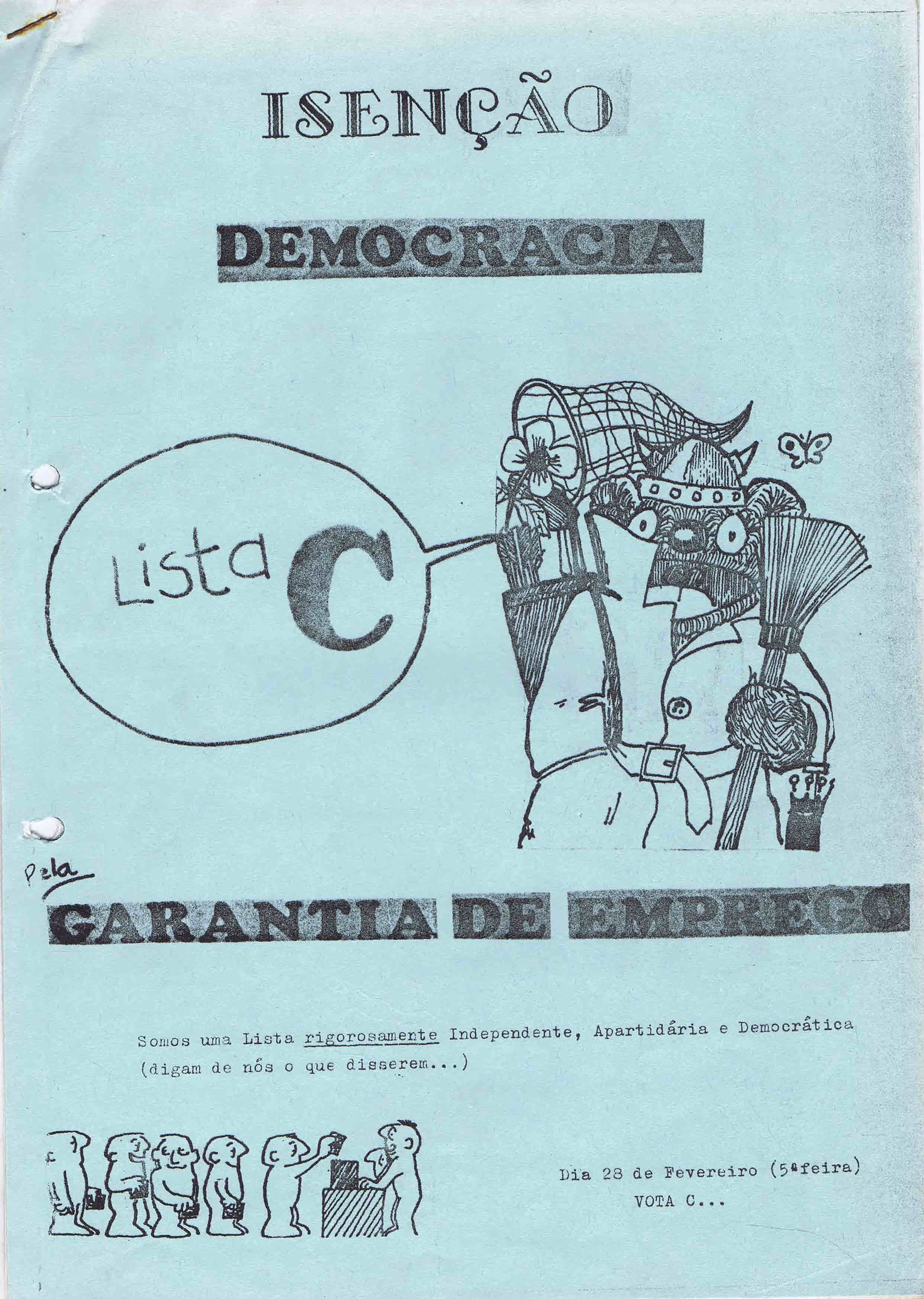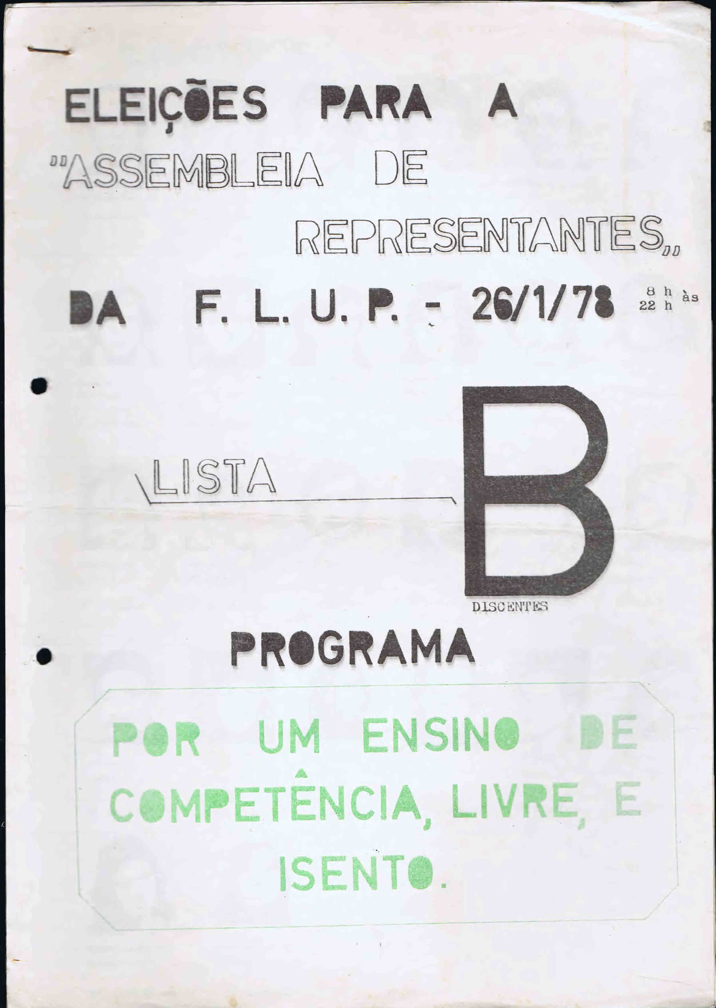 Agradeço a Maria de Fátima Gomes a oferta de uma colecção de papéis, na sua maioria oriundos do movimento estudantil do Porto, em particular da Faculdade de Letras , na segunda metade da década de setenta. Algumas entradas já foram feitas com materiais deste conjunto ( ANAR BAND, ALIANÇA SOCIALISTA DA JUVENTUDE – FACULDADE DE LETRAS DO PORTO, GRUPO AUTÓNOMO DOS ESTUDANTES DO PORTO , etc.), e em breve serão publicadas várias listas associativas.