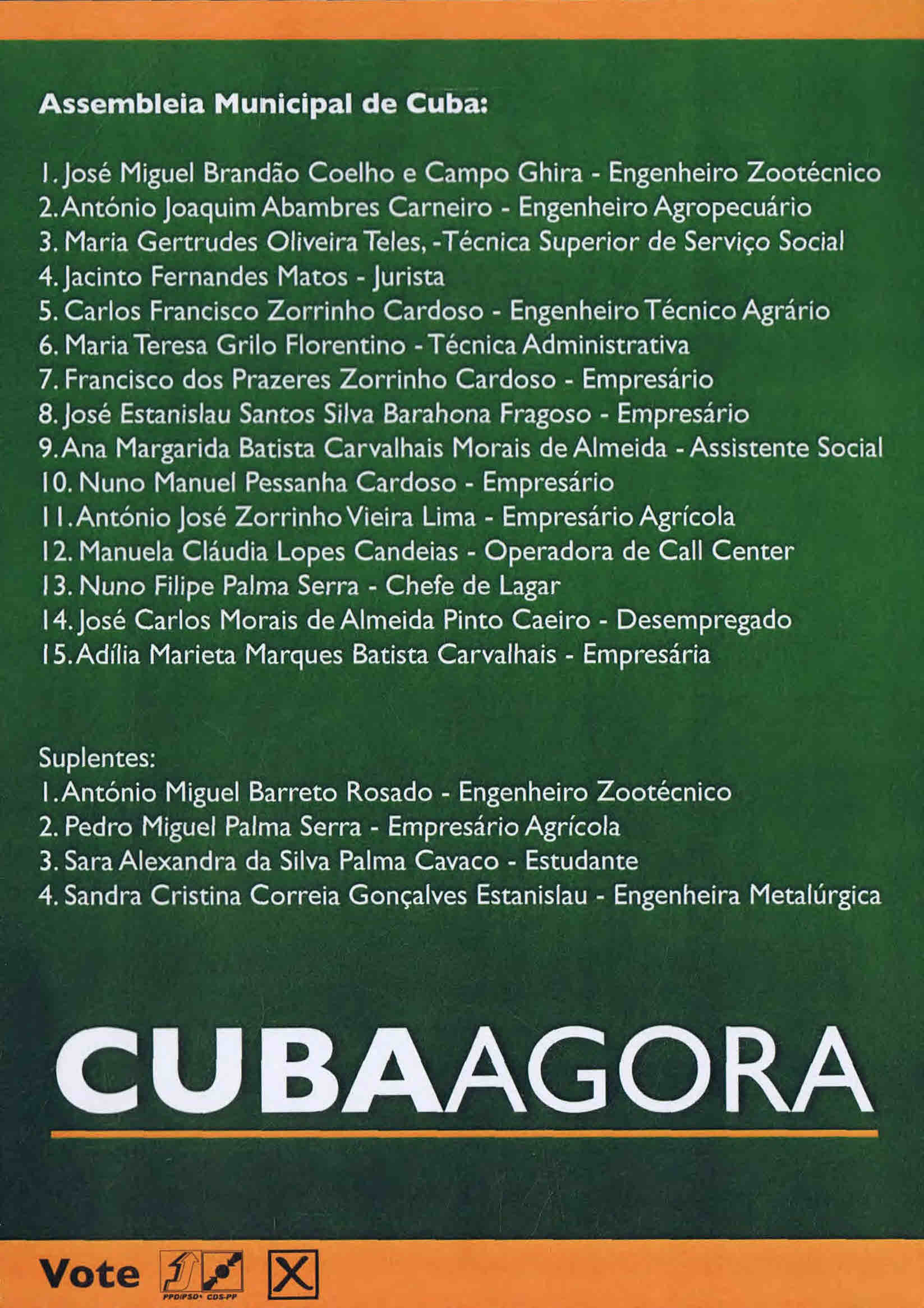 ELEIÇÕES AUTÁRQUICAS DE 2013 – CUBA – PSD – CDS 26/10/2013 JPP 2013, 2013- Eleições autárquicas, ARQUIVO, Autocolantes, Cartazes - faixas - outdoors, CENTRO DEMOCRÁTICO-SOCIAL - PARTIDO POPULAR (CDS-PP), Cuba, Panfletos - folhetos - folhas volantes - prospectos tarjetas, PARTIDO SOCIAL-DEMOCRATA (PSD), Processos eleitorais 0 Autocolante. Cartazes. Panfletos. Click to print (Opens in new window) Print Click to email a link to a friend (Opens in new window) Email Click to share on Facebook (Opens in new window) Facebook Click to share on X (Opens in new window) X Click to share on LinkedIn (Opens in new window) LinkedIn Like this:Like Loading...