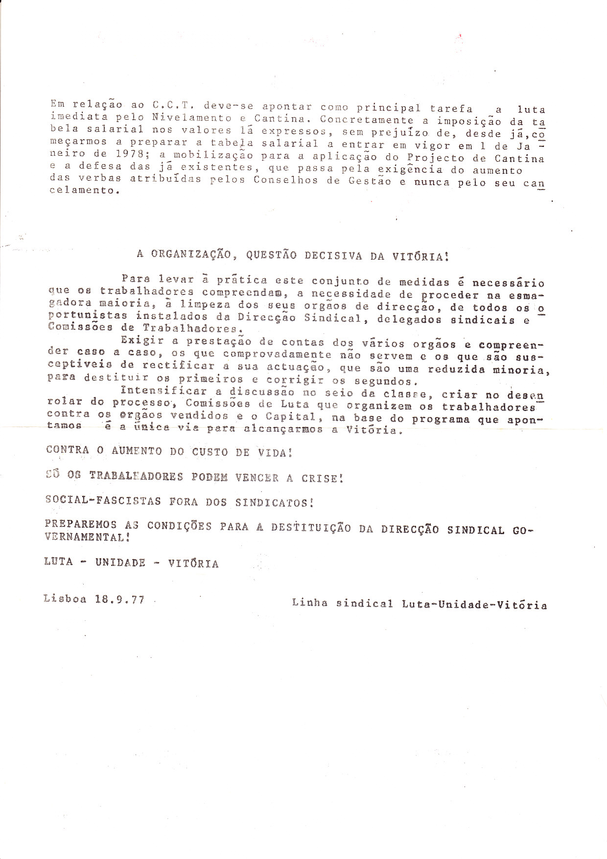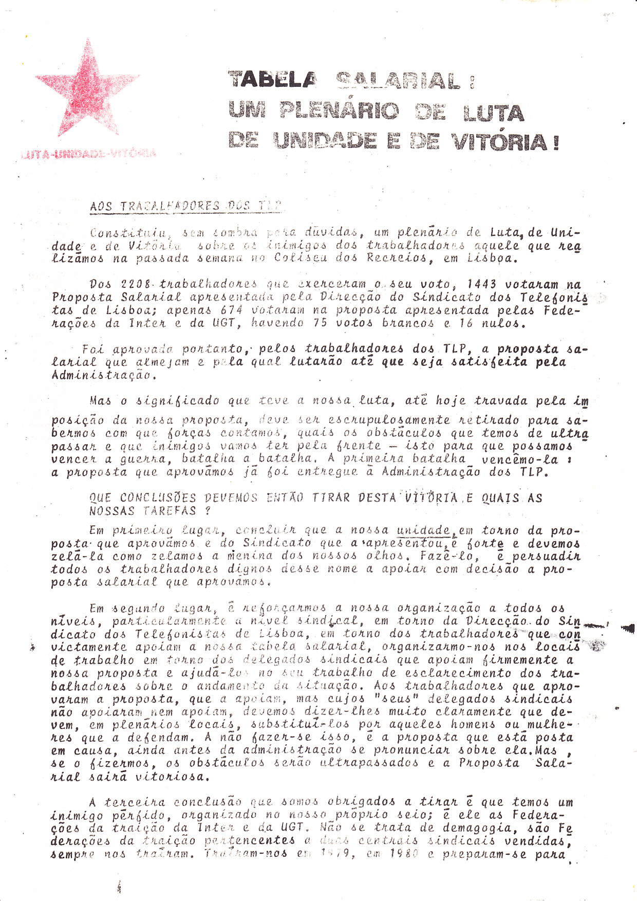 LINHA SINDICAL “LUTA UNIDADE VITÓRIA” (NOS TLP) 28/10/2013 JPP ARQUIVO, LINHA SINDICAL "LUTA UNIDADE VITÓRIA" (NOS TLP), MOVIMENTO REORGANIZATIVO DO PARTIDO DO PROLETARIADO (PCTP/MRPP), Panfletos - folhetos - folhas volantes - prospectos tarjetas, Sindicalismo, TLP 0 Click to print (Opens in new window) Print Click to email a link to a friend (Opens in new window) Email Click to share on Facebook (Opens in new window) Facebook Click to share on X (Opens in new window) X Click to share on LinkedIn (Opens in new window) LinkedIn Like this:Like Loading...