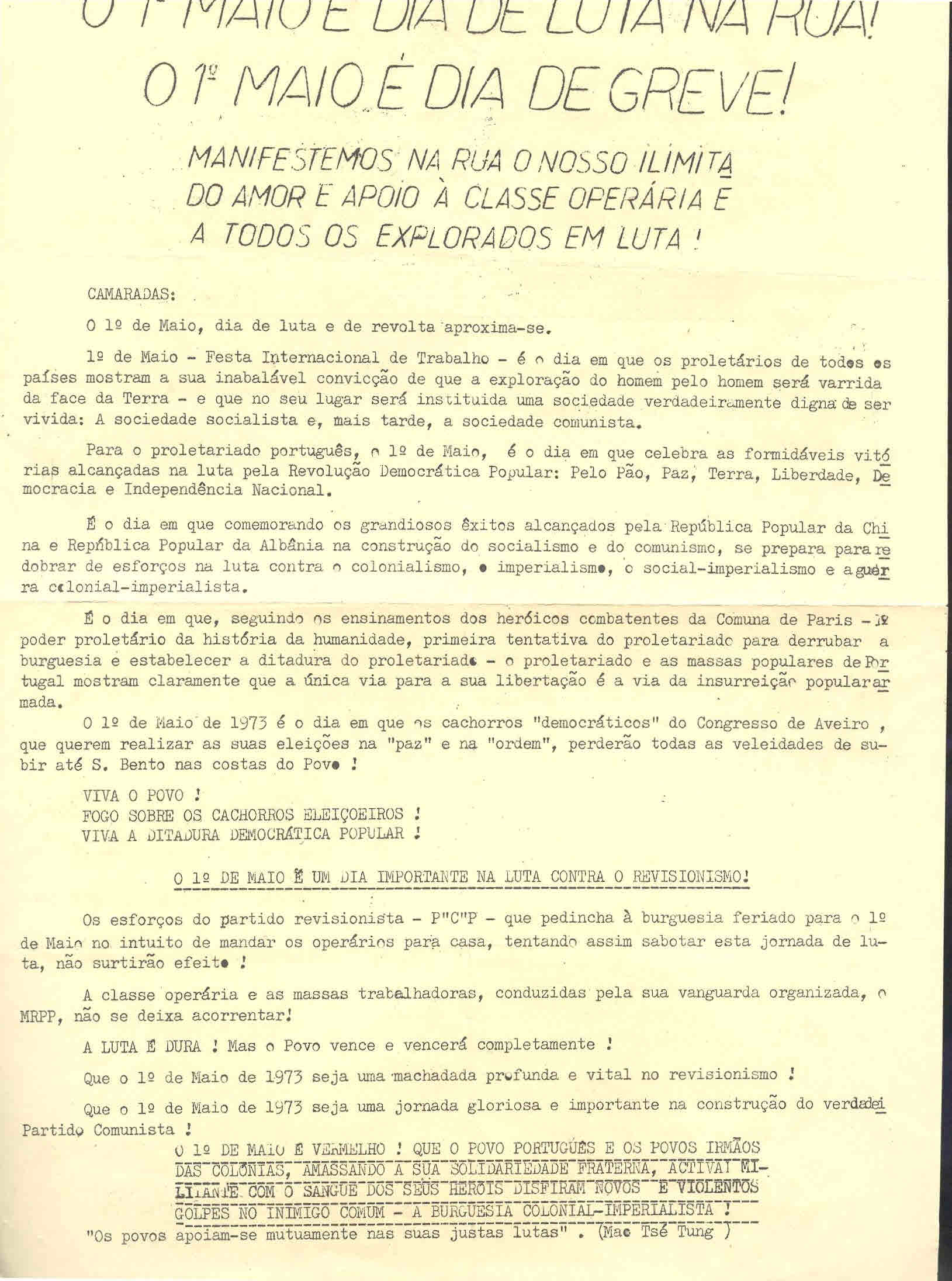 COMITÉS VERMELHOS 1º MAIO 18/11/2013 JPP ARQUIVO, COMITÉS VERMELHOS 1º MAIO, MOVIMENTO REORGANIZATIVO DO PARTIDO DO PROLETARIADO (PCTP/MRPP), Oposição portuguesa / Publicações clandestinas, Panfletos - folhetos - folhas volantes - prospectos tarjetas 0 Print (Opens in new window) Print Email a link to a friend (Opens in new window) Email Share on Facebook (Opens in new window) Facebook Share on X (Opens in new window) X Share on LinkedIn (Opens in new window) LinkedIn Like this:Like Loading...