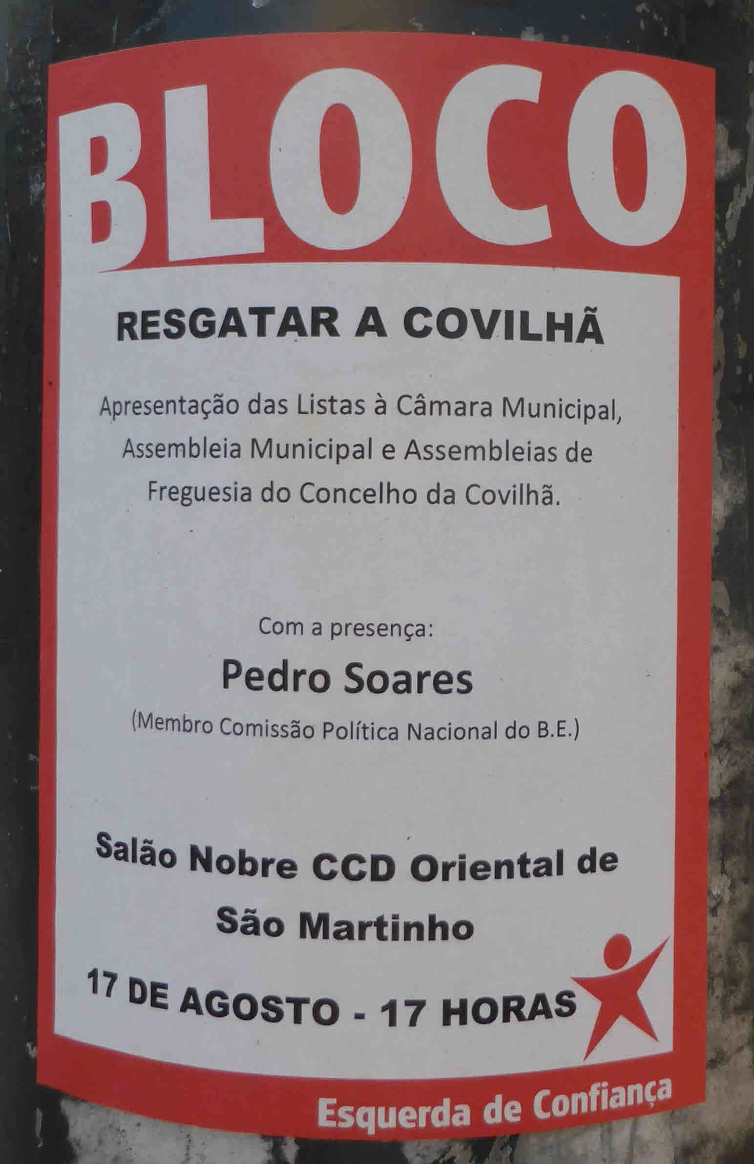 ELEIÇÕES AUTÁRQUICAS DE 2013 – COVILHÃ – BE 30/11/2013 JPP 2013, 2013- Eleições autárquicas, ARQUIVO, BLOCO DE ESQUERDA (BE), Cartazes - faixas - outdoors, Covilhã, Panfletos - folhetos - folhas volantes - prospectos tarjetas, Processos eleitorais 0 Print (Opens in new window) Print Email a link to a friend (Opens in new window) Email Share on Facebook (Opens in new window) Facebook Share on X (Opens in new window) X Share on LinkedIn (Opens in new window) LinkedIn Like this:Like Loading...