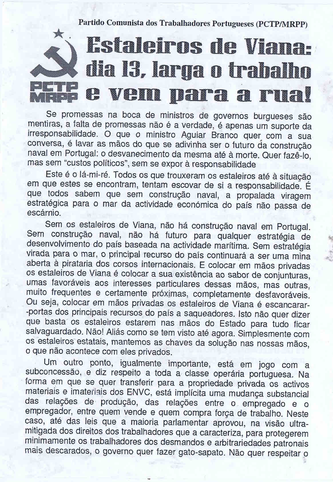 PCTP – MRPP – ACTIVIDADES (2º SEMESTRE DE 2013) 08/12/2013 JPP 2013, ARQUIVO, Cartazes - faixas - outdoors, MOVIMENTO REORGANIZATIVO DO PARTIDO DO PROLETARIADO (PCTP/MRPP), Panfletos - folhetos - folhas volantes - prospectos tarjetas 0 ACTUALIZADO Cartazes. Ver PCTP – MRPP – ACTIVIDADES (1º SEMESTRE DE 2013) Click to print (Opens in new window) Print Click to email a link to a friend (Opens in new window) Email Click to share on Facebook (Opens in new window) Facebook Click to share on X (Opens in new window) X Click to share on LinkedIn (Opens in new window) LinkedIn Like this:Like Loading...