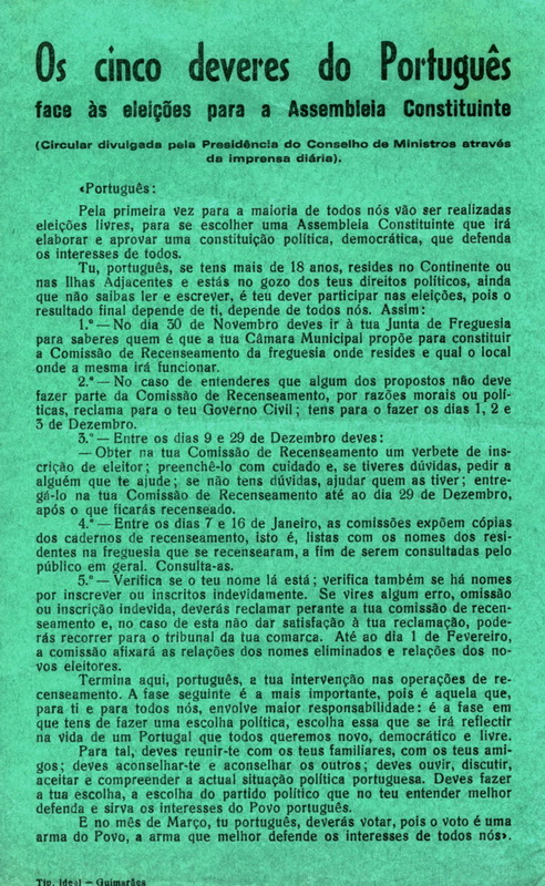 ELEIÇÕES PARA A ASSEMBLEIA CONSTITUINTE / ELEIÇÕES LEGISLATIVAS DE 1975 – INFORMAÇÃO INSTITUCIONAL 09/12/2013 JPP 1975, 1975 - Eleições legislativas, 1975 - Eleições para a Assembleia Constituinte, ARQUIVO, Processos eleitorais 0 Print (Opens in new window) Print Email a link to a friend (Opens in new window) Email Share on Facebook (Opens in new window) Facebook Share on X (Opens in new window) X Share on LinkedIn (Opens in new window) LinkedIn Like this:Like Loading...
