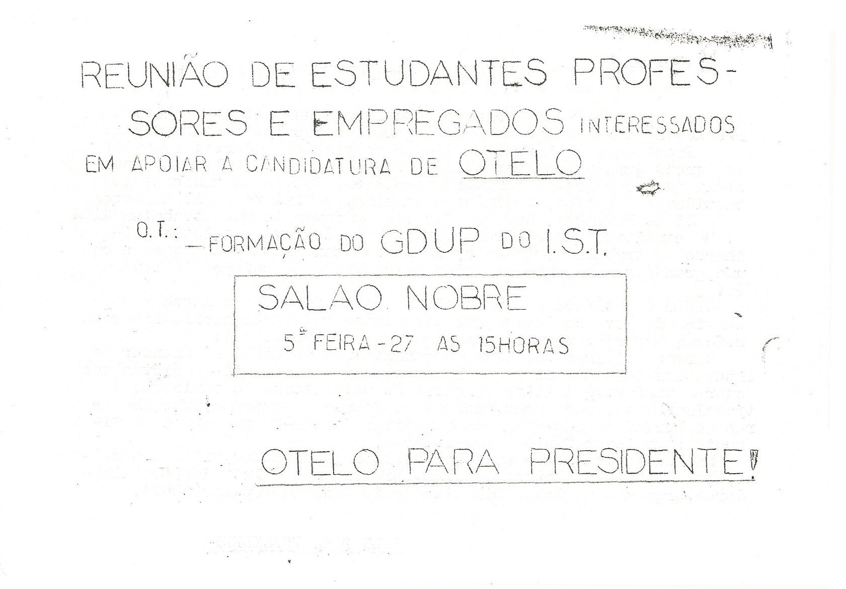 GDUP – IST 14/12/2013 JPP 1976, 1976 - Eleições Presidenciais, ARQUIVO, Autocolantes, Carvalho Otelo Saraiva de, GRUPOS DINAMIZADORES DA UNIDADE POPULAR (GDUP), INSTITUTO SUPERIOR TÉCNICO (IST), Panfletos - folhetos - folhas volantes - prospectos tarjetas 0 Autocolante. Print (Opens in new window) Print Email a link to a friend (Opens in new window) Email Share on Facebook (Opens in new window) Facebook Share on X (Opens in new window) X Share on LinkedIn (Opens in new window) LinkedIn Like this:Like Loading...
