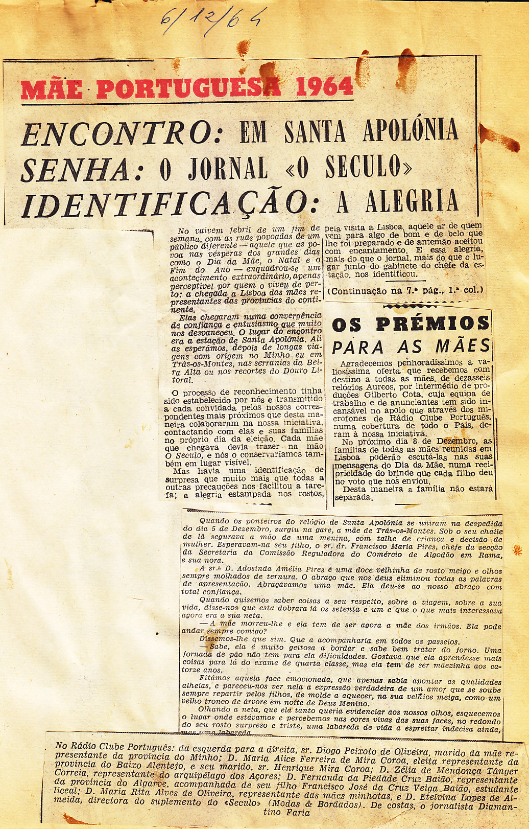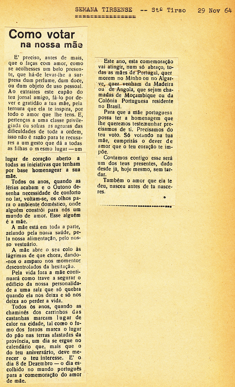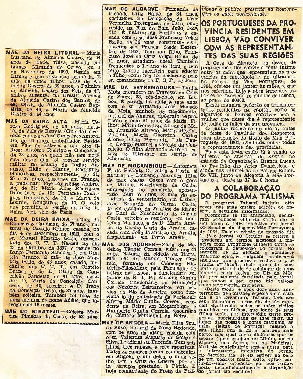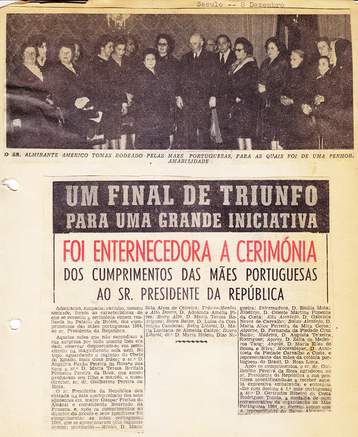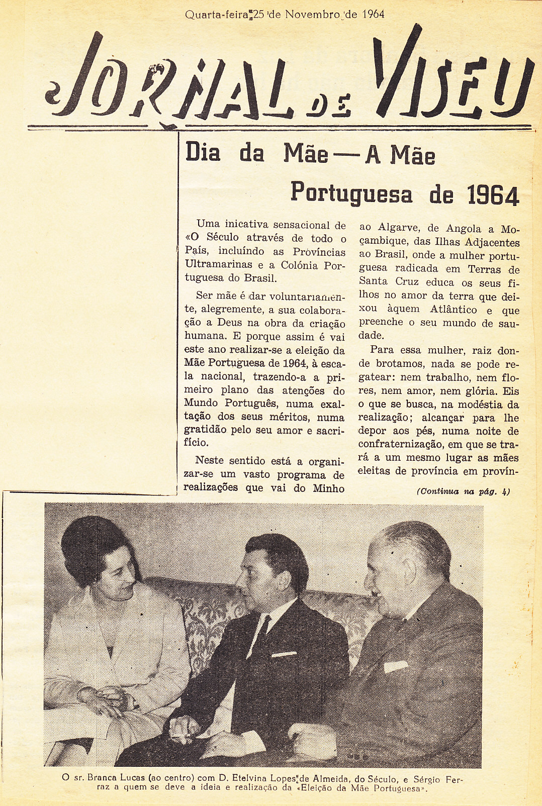 Entrou, por aquisição, um dossier de fotografias, recortes, panfletos e outros materiais relativos à “Eleição da Mãe Portuguesa” em 1964. O dossier inclui alguns documentos pessoais de Sérgio Ferraz, jornalista, que em conjunto com o jornal O Século organizou a iniciativa. Sérgio Ferraz foi pioneiro de algumas formas de publicidade, como era o caso dos sinais luminosos. Para além disso, estão incluídas fotografias, bilhetes, e recortes relativos ao evento.