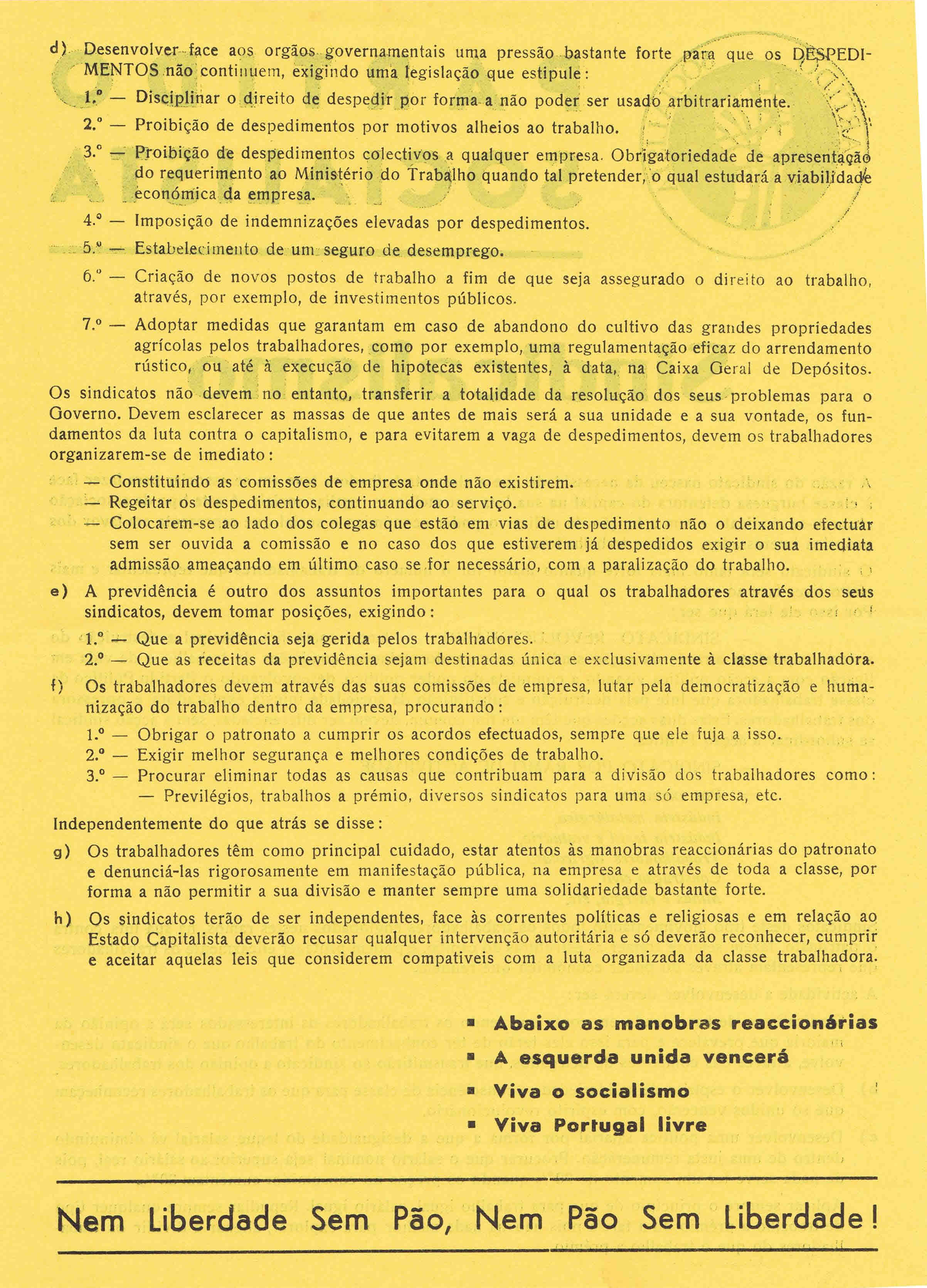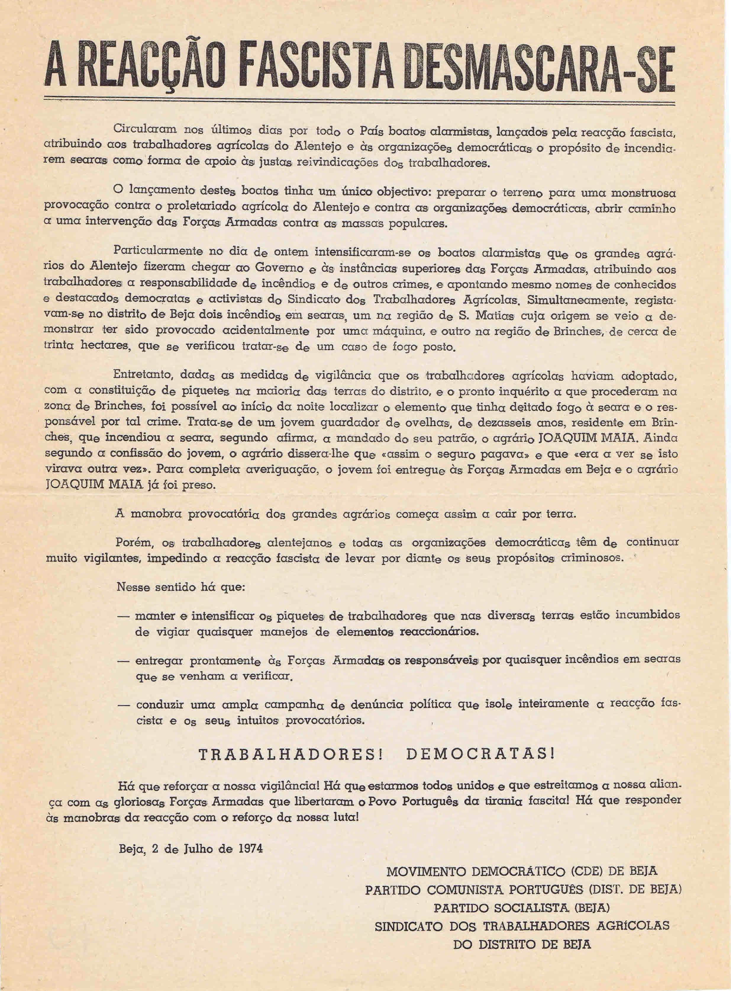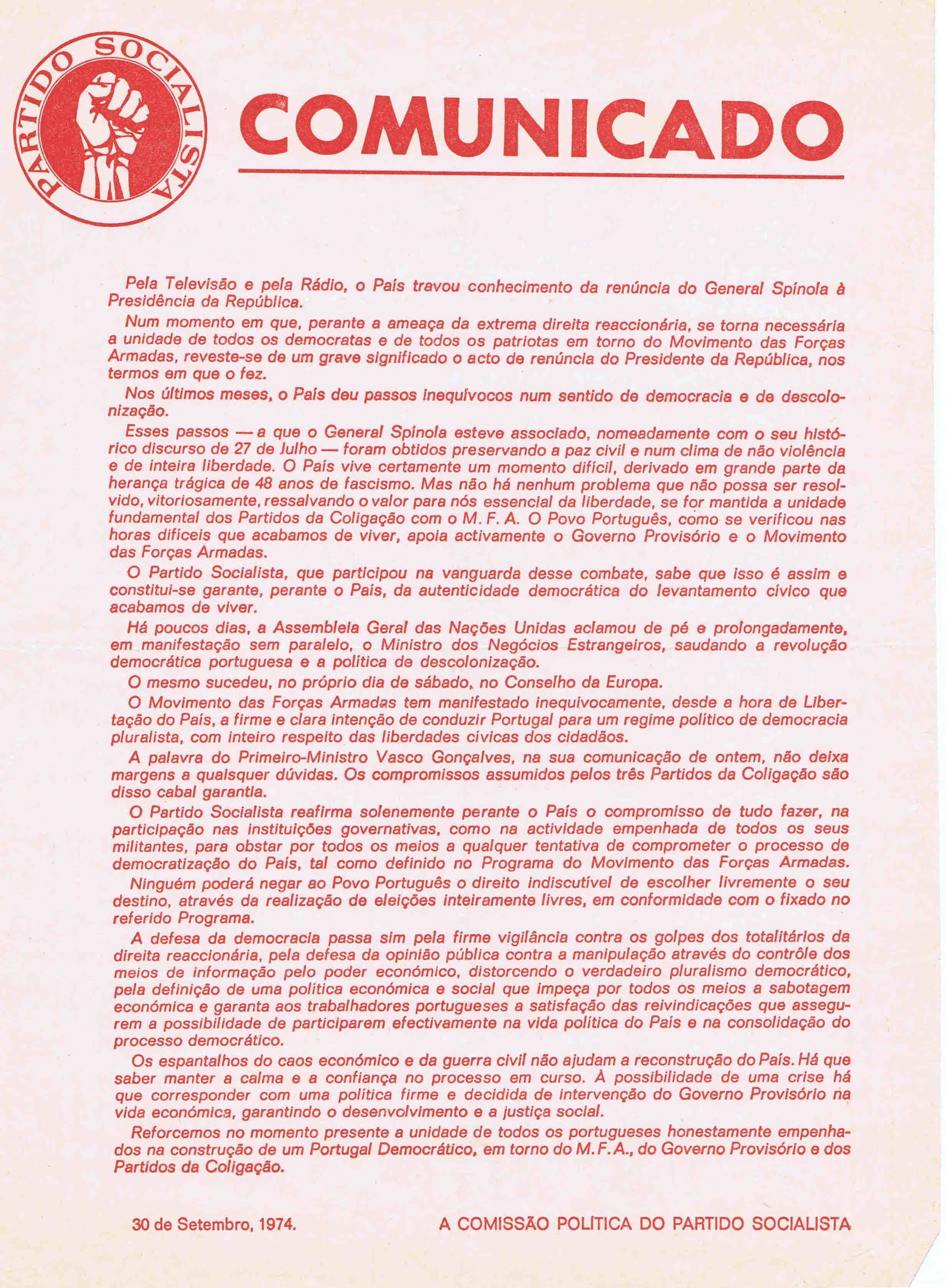 MDP / PPD / PS / PCP / INTERSINDICAL – COMUNICADO AOS EMIGRANTES (AGOSTO 1974)