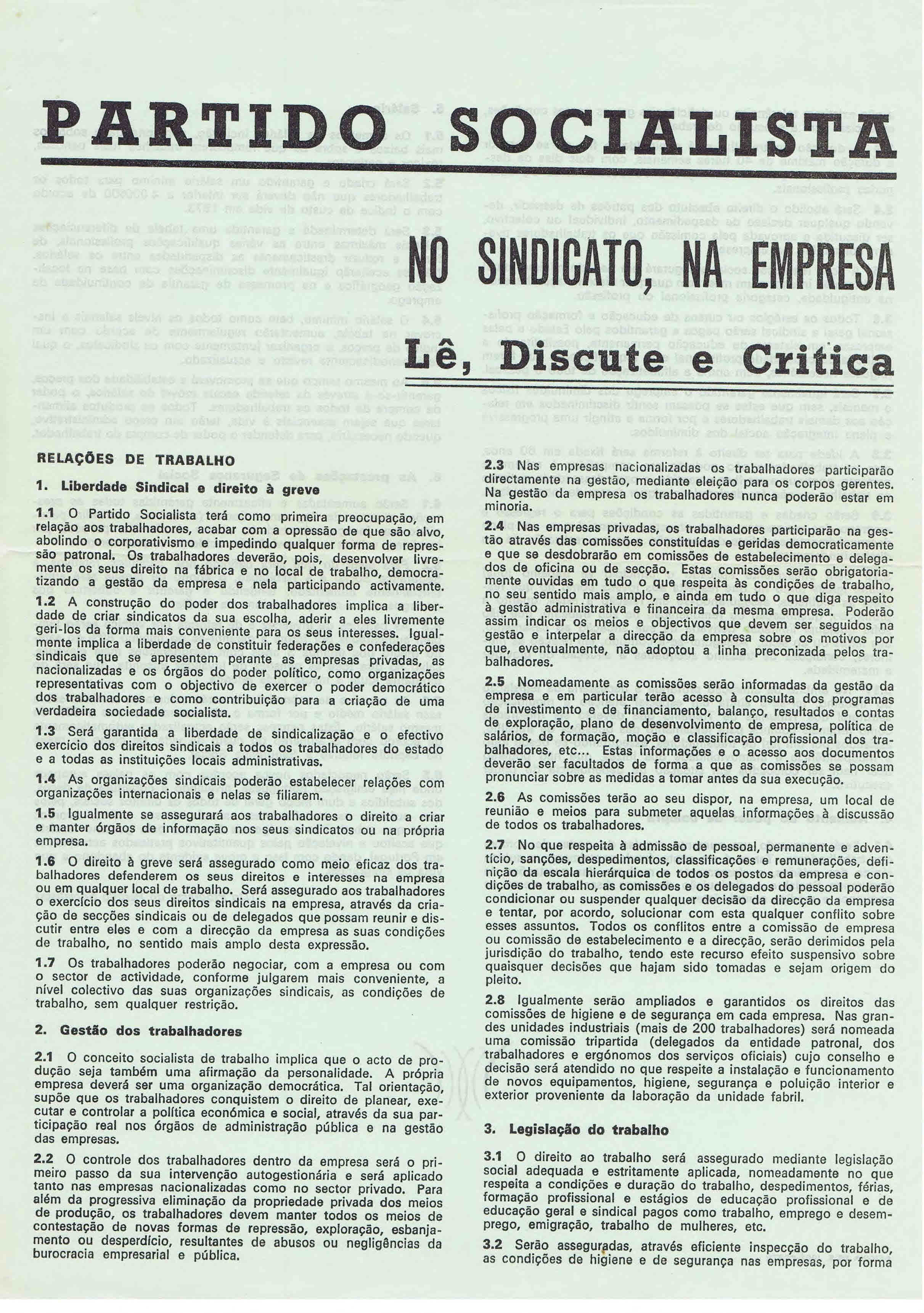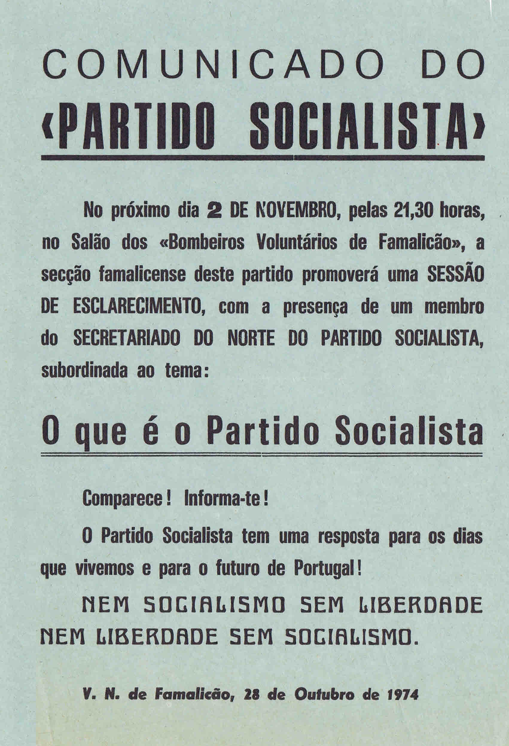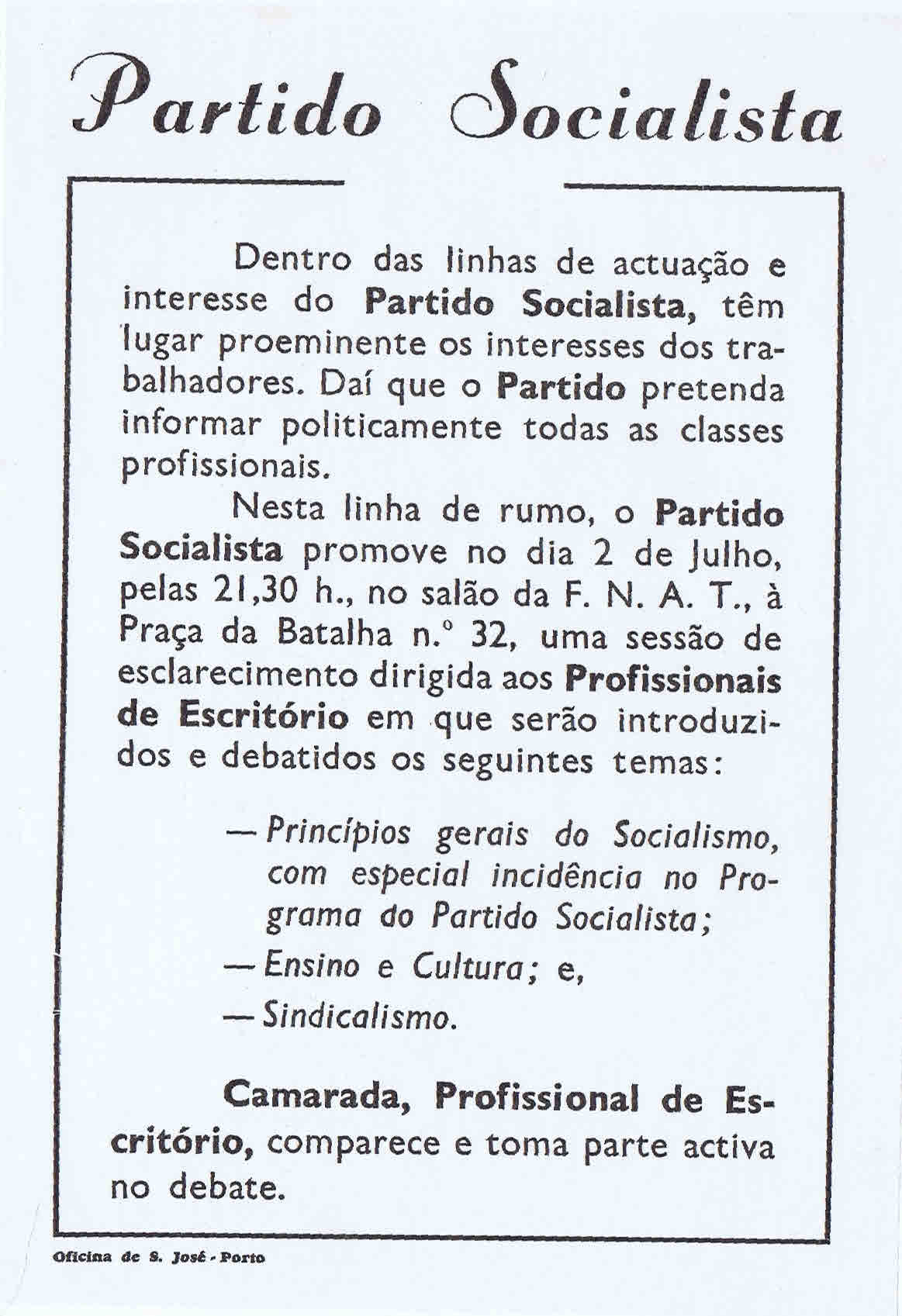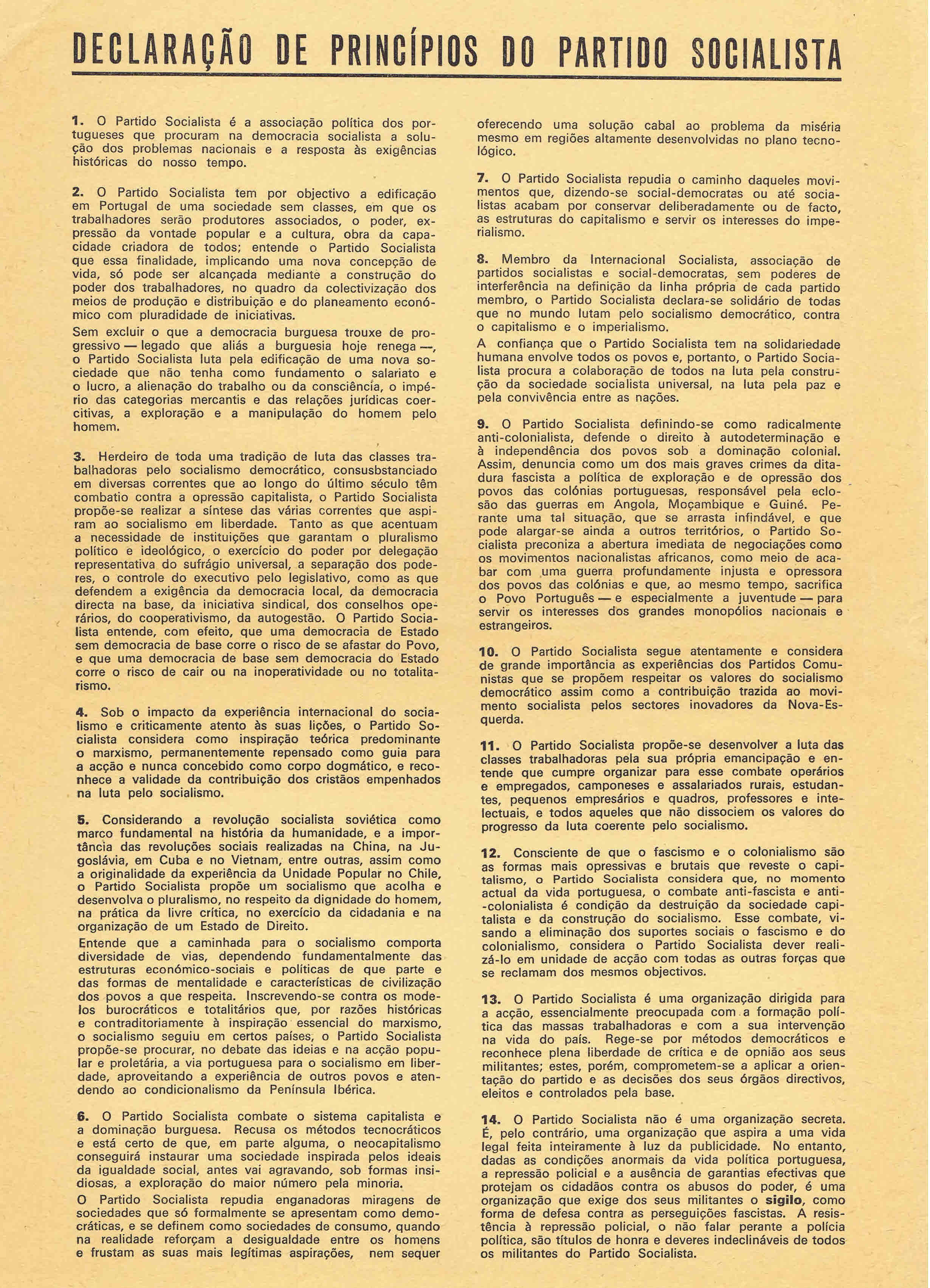 PS – I CONGRESSO (DEZEMBRO DE 1974)