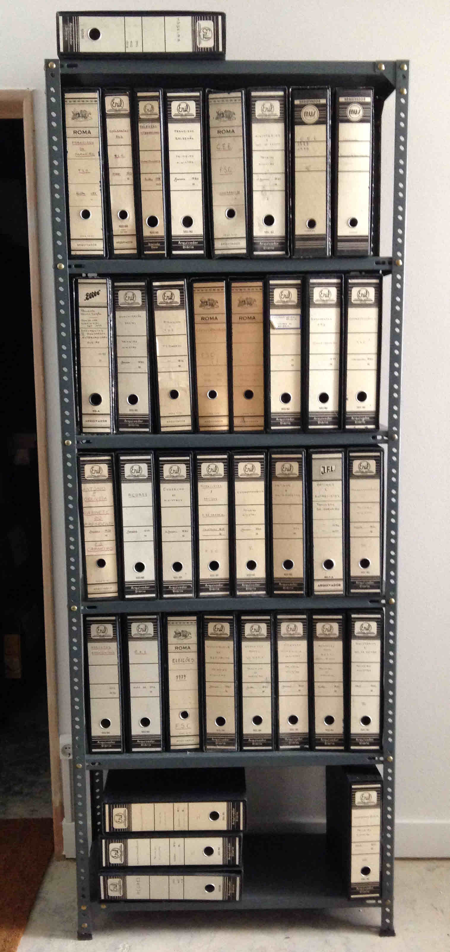 Quanto aos arquivos, espólios e papéis, continua a transferência, com destaque para o ARQUIVO CONCEIÇÃO MONTEIRO – PAPÉIS DE SÁ CARNEIRO (1974-1980), que pela primeira vez fica em condições adequadas de organização e posteriormente de consulta (ver foto das pastas grandes entradas). As pastas pequenas estarão noutro espaço ao lado, assim como os papéis avulsos.