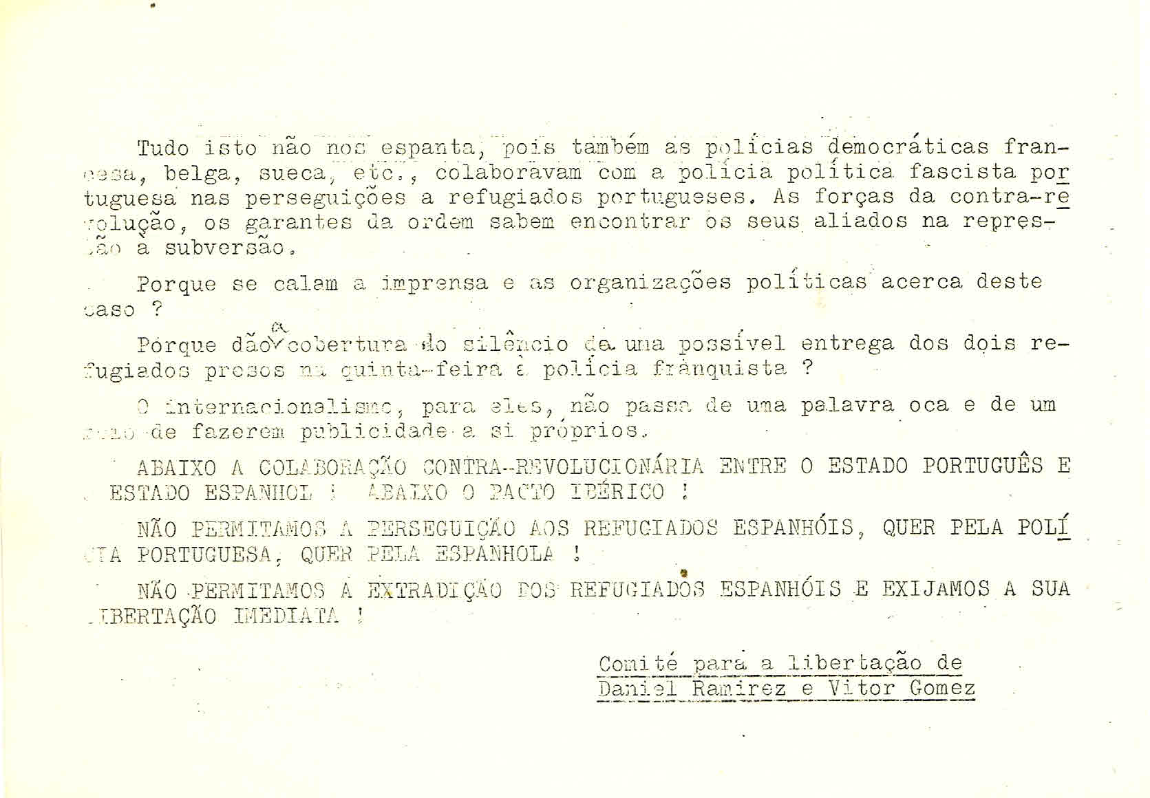COMITÉ PARA A LIBERTAÇÃO DE DANIEL RAMIREZ E VITOR GOMEZ 05/12/2014 JPP ARQUIVO, COMITÉ PARA A LIBERTAÇÃO DE DANIEL RAMIREZ E VITOR GOMEZ, Espanha, Panfletos - folhetos - folhas volantes - prospectos tarjetas, Repressão 0 1975? Print (Opens in new window) Print Email a link to a friend (Opens in new window) Email Share on Facebook (Opens in new window) Facebook Share on X (Opens in new window) X Share on LinkedIn (Opens in new window) LinkedIn Like this:Like Loading...