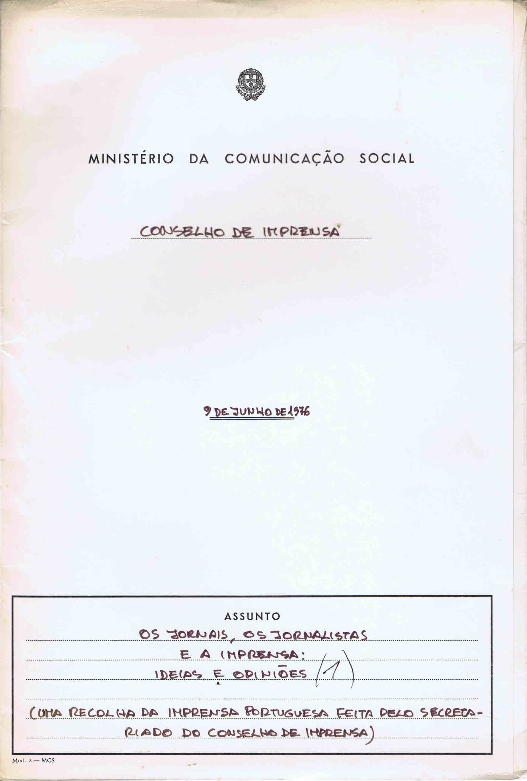 Agradeço a Francisco Pinto Balsemão a segunda remessa de materiais oferecidos ao ARQUIVO / BIBLIOTECA , constituída por cerca de 350-400 livros, e por 90 pastas de documentos contendo materiais relativos ao Conselho de Imprensa, Ministério da Comunicação Social e Secretaria de Estado da Comunicação Social, de 1975 a 1978. Algumas pastas fora desta série são relativas ao acompanhamento que fez das questões da comunicação social, em particular de novas tecnologias. No interior das pastas há documentos com notas manuscritas, na sua maioria do próprio Francisco Pinto Balsemão.