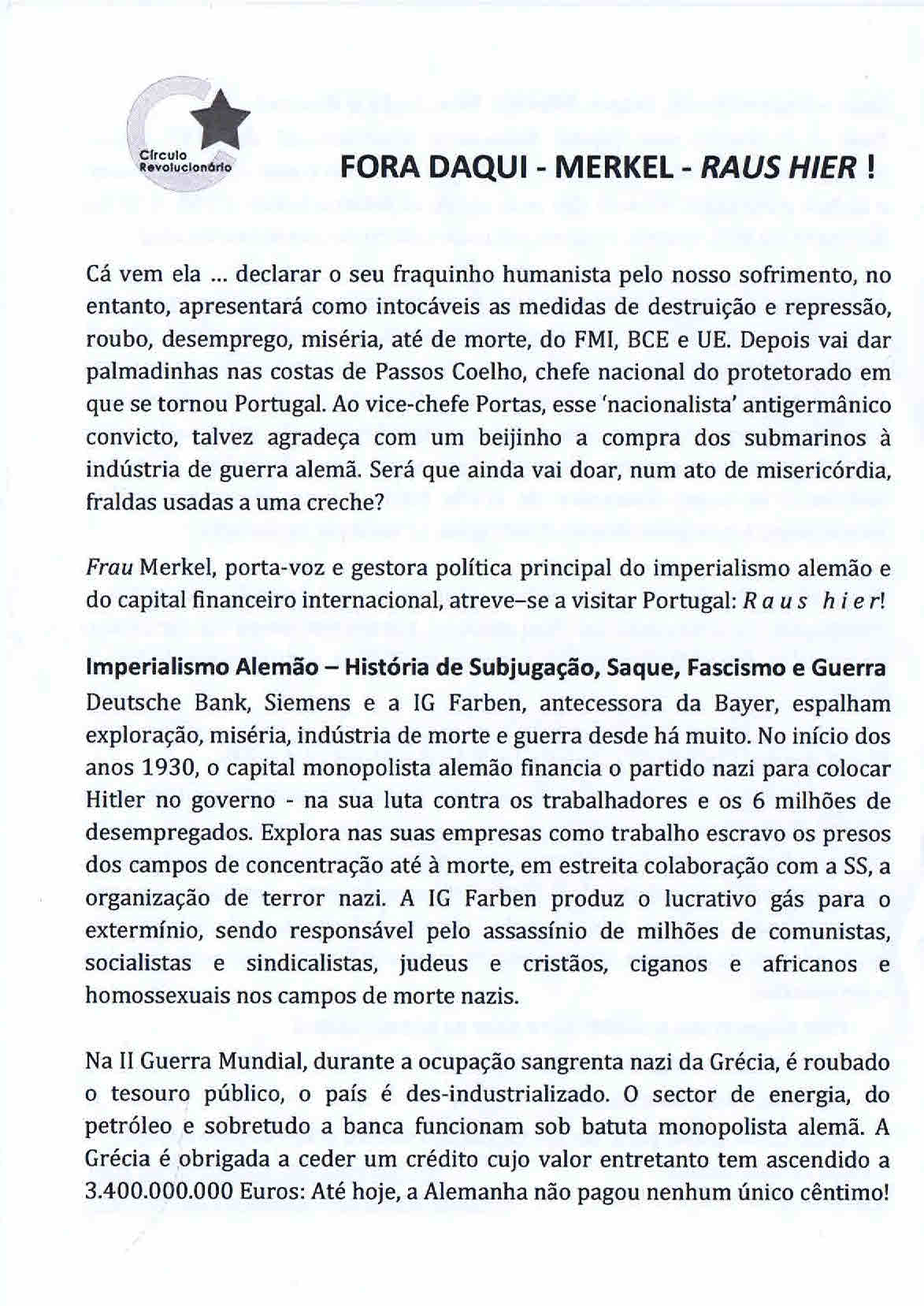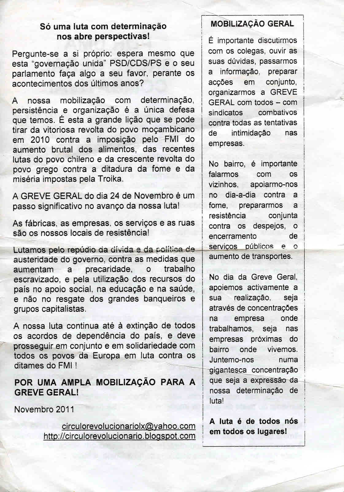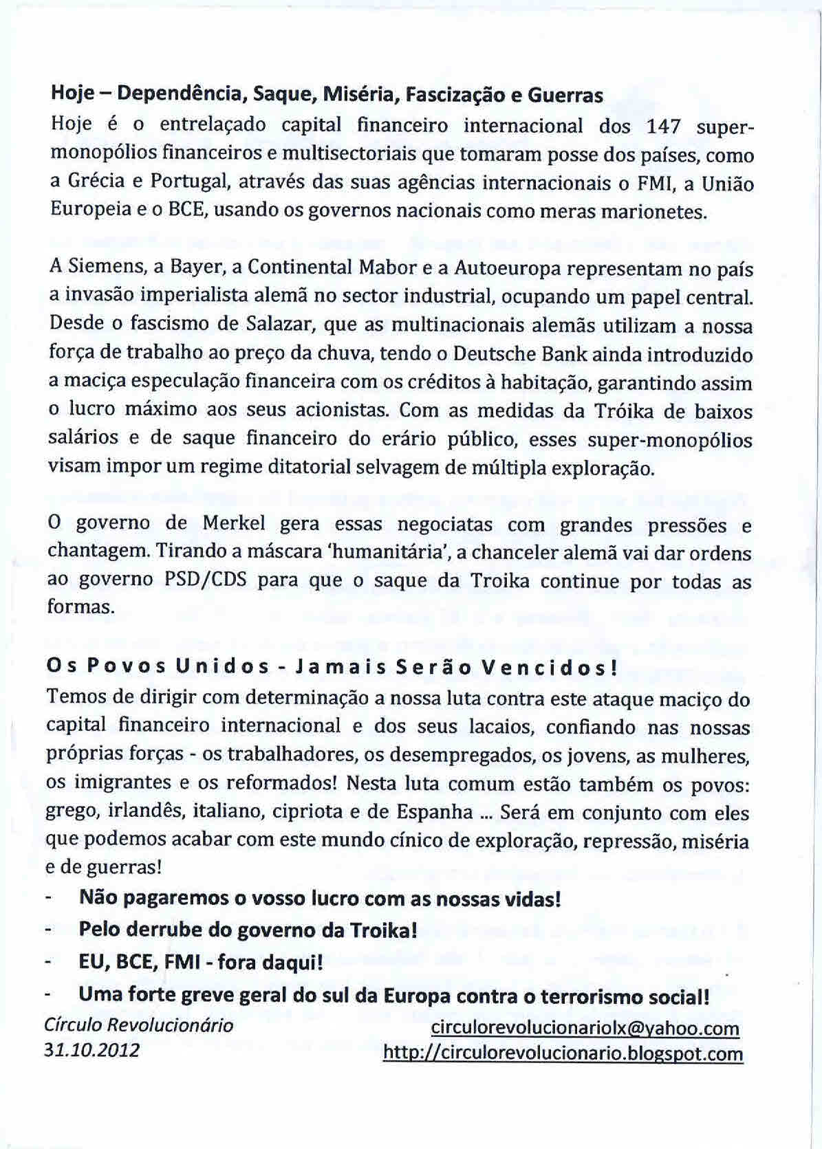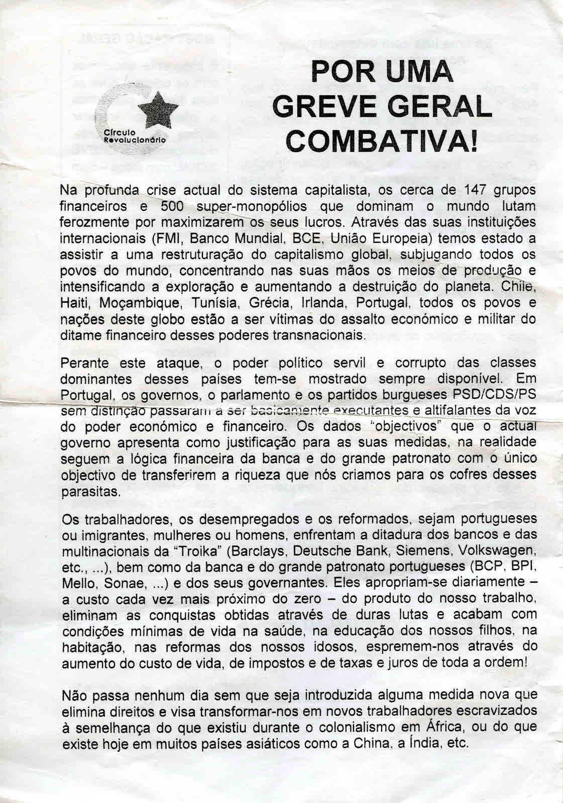 Panfleto distribuído na manifestação de 15 de Outubro de 2011 em Lisboa.